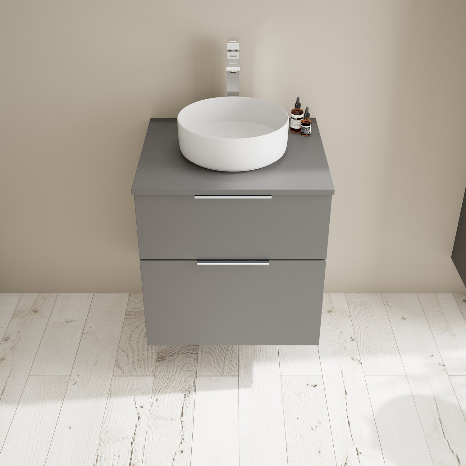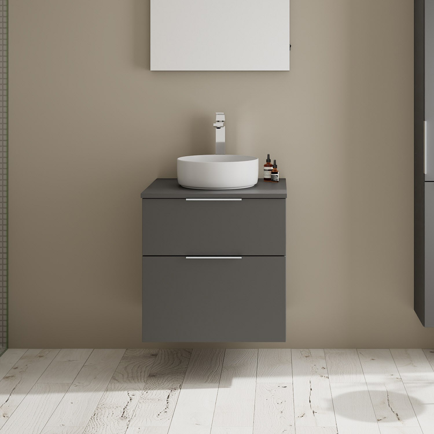burgbad Eqio Waschtischkombination mit Keramik-Aufsatzwaschtisch 60 cm, Griff G0146