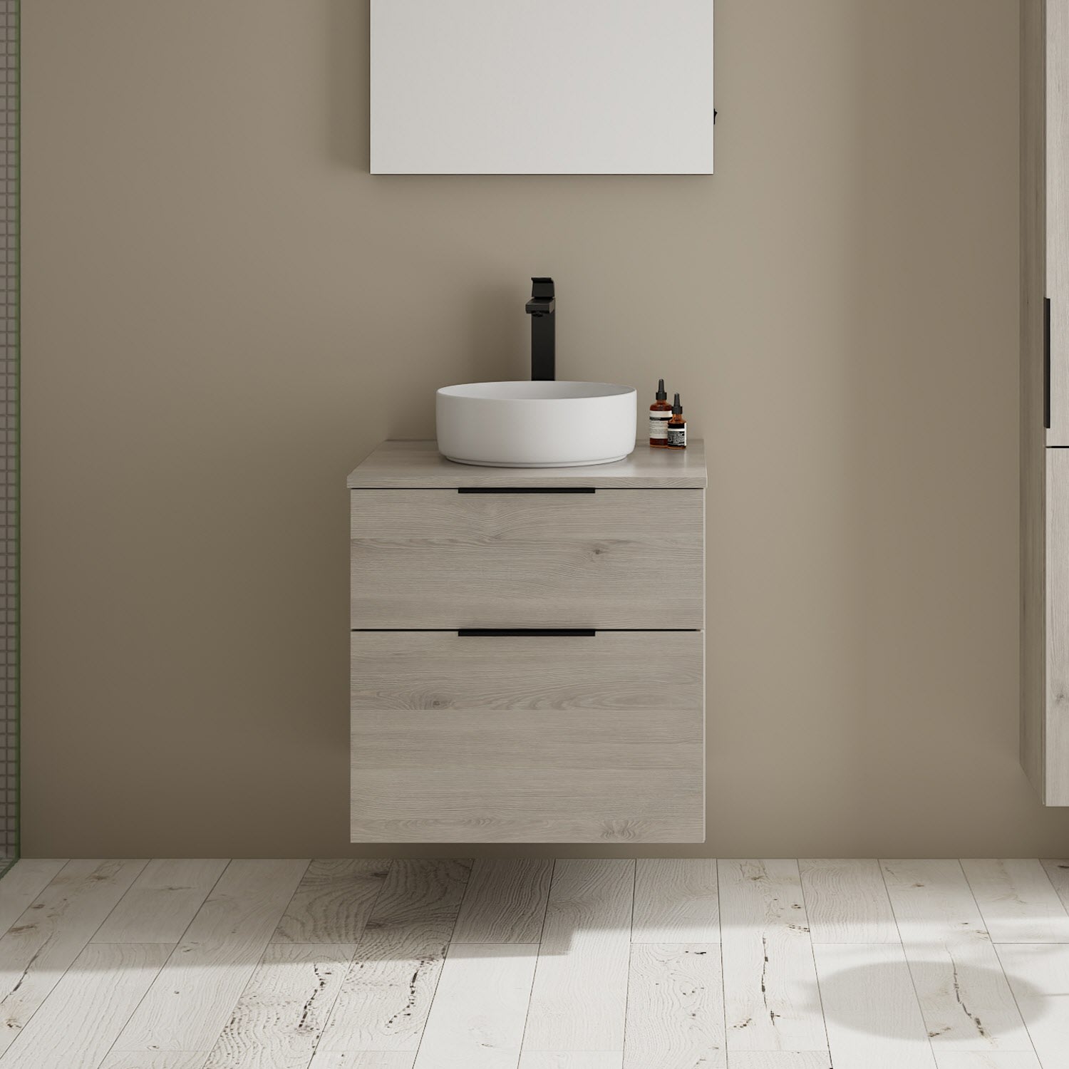 burgbad Eqio Waschtischkombination mit Keramik-Aufsatzwaschtisch 60 cm, Griff G0200