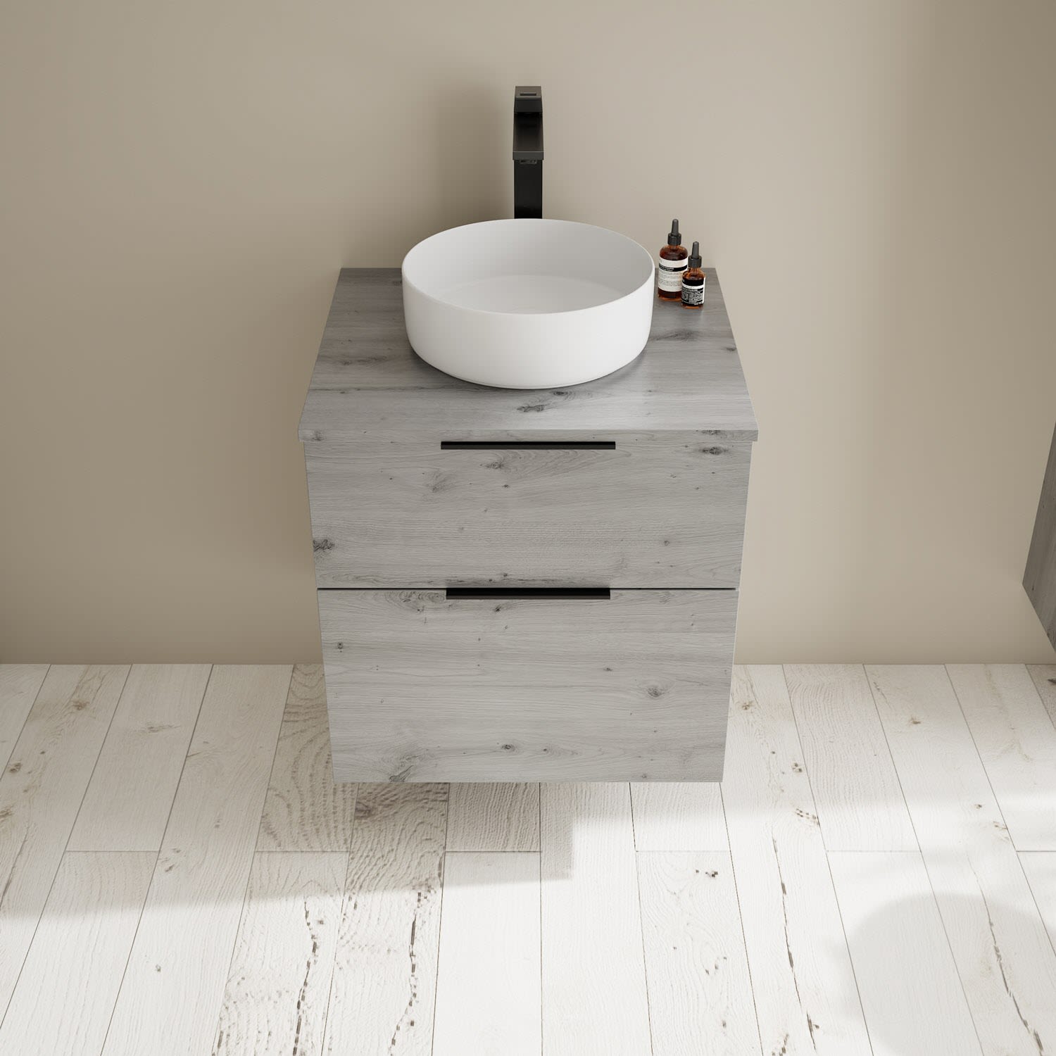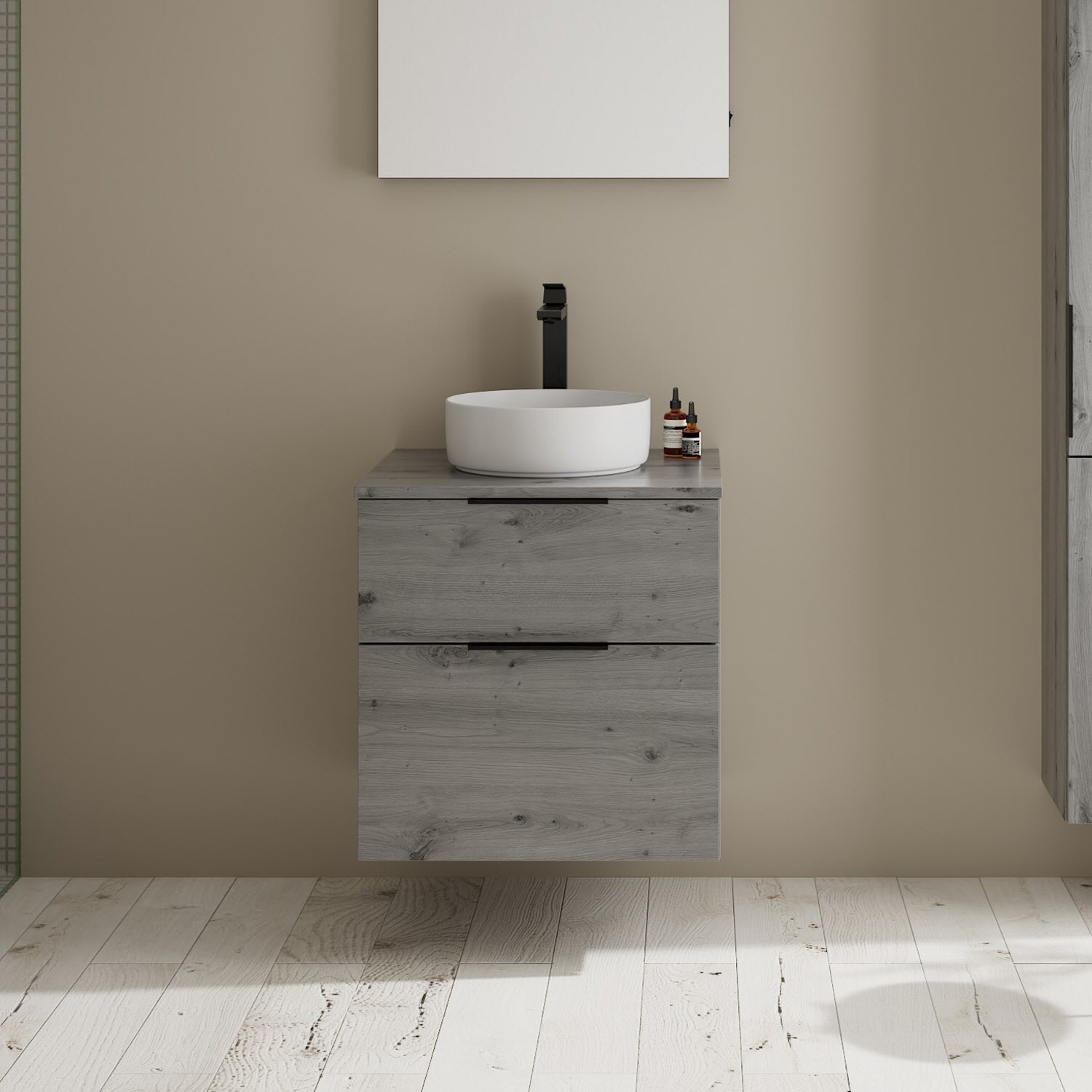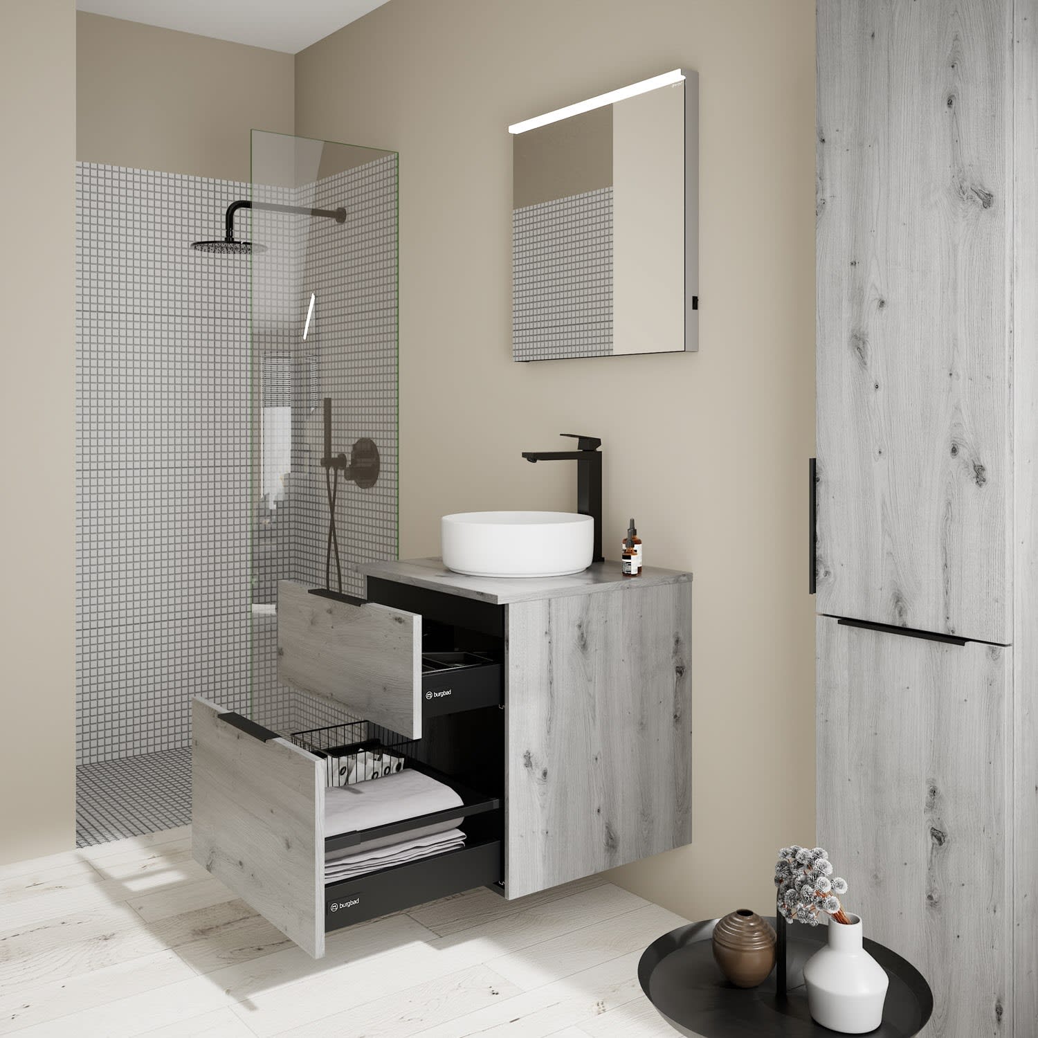 burgbad Eqio Waschtischkombination mit Keramik-Aufsatzwaschtisch 60 cm, Griff G0200