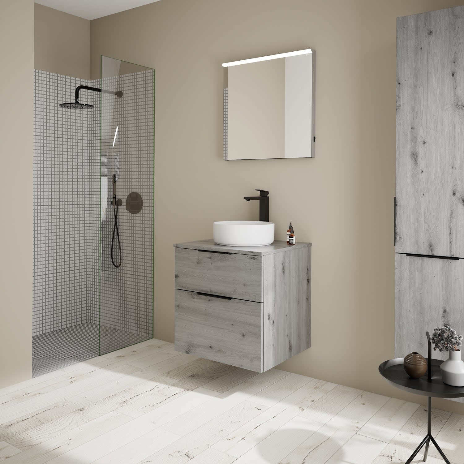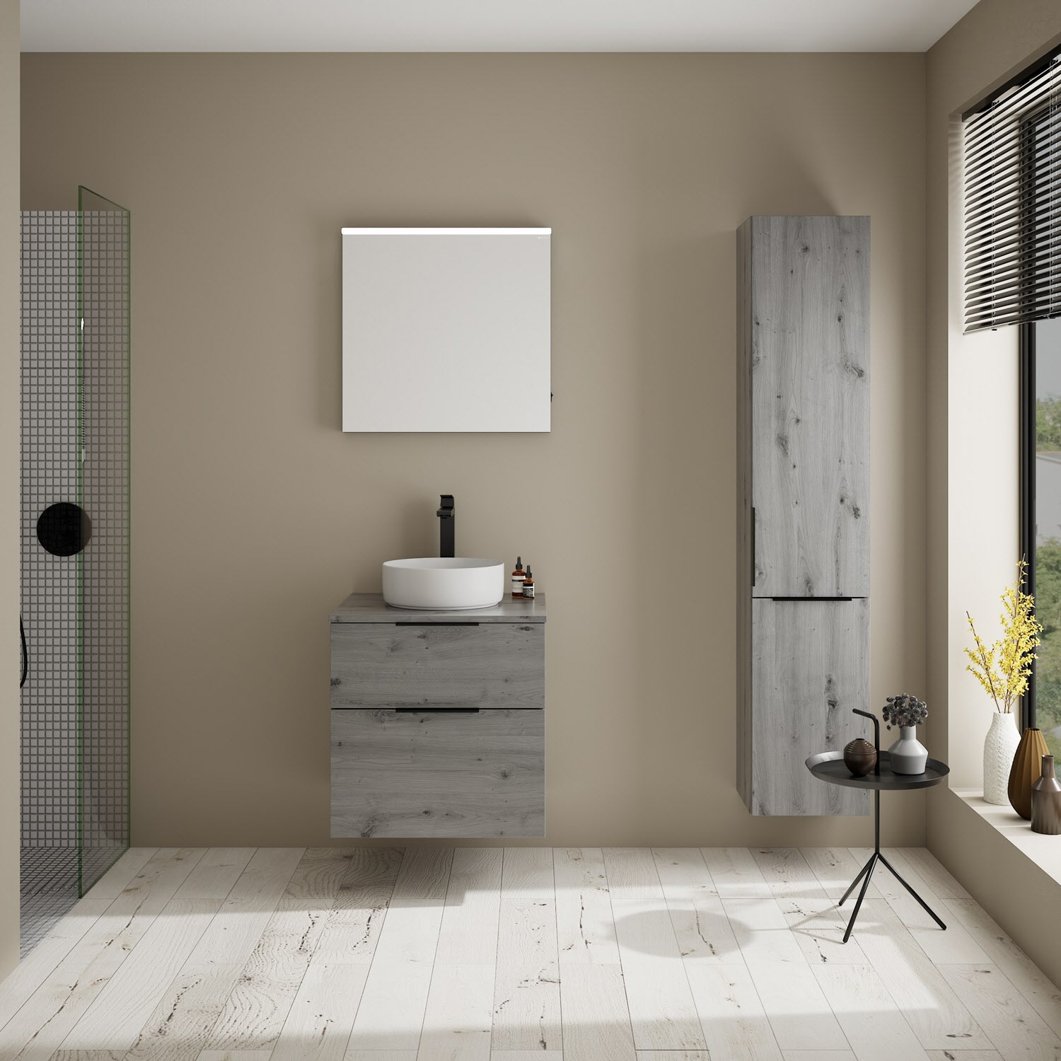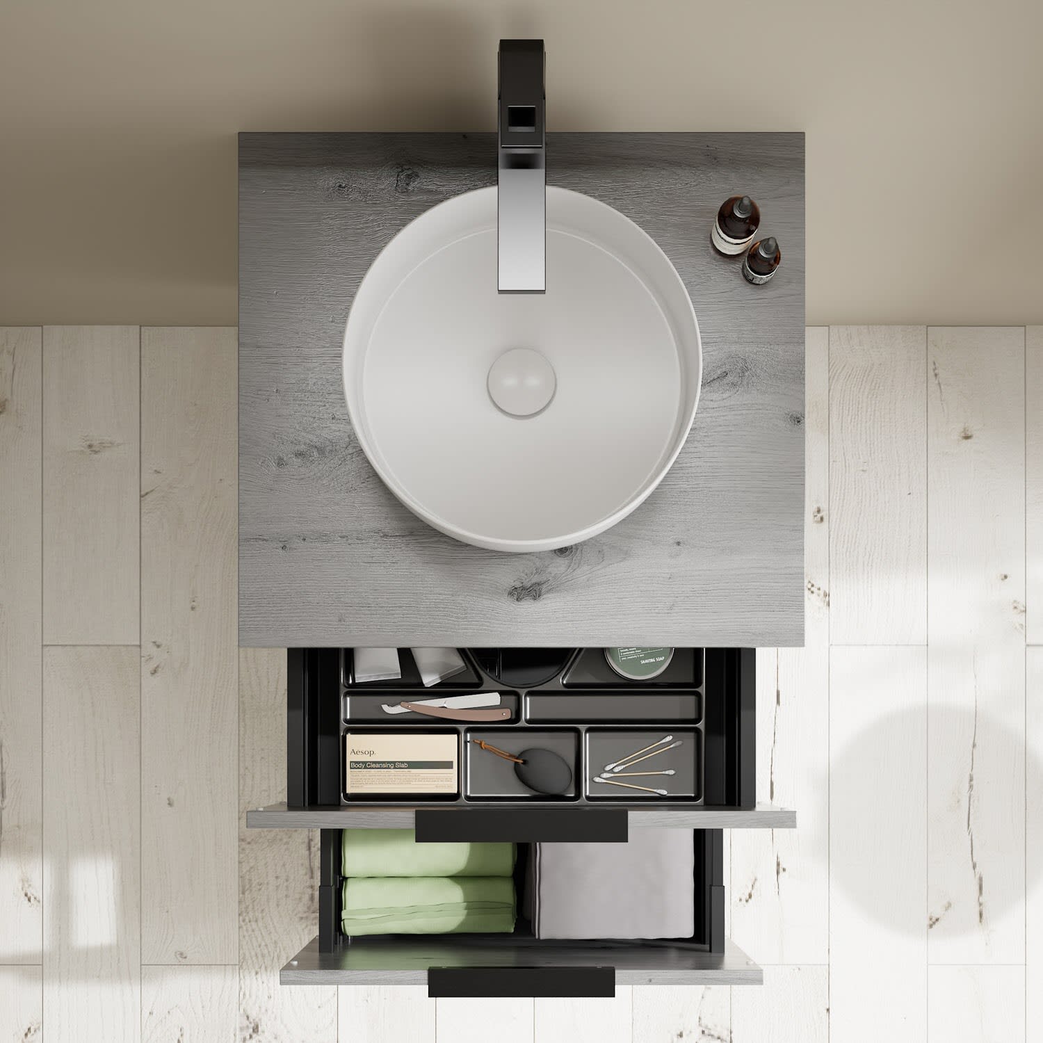 burgbad Eqio Waschtischkombination mit Keramik-Aufsatzwaschtisch 60 cm, Griff G0200