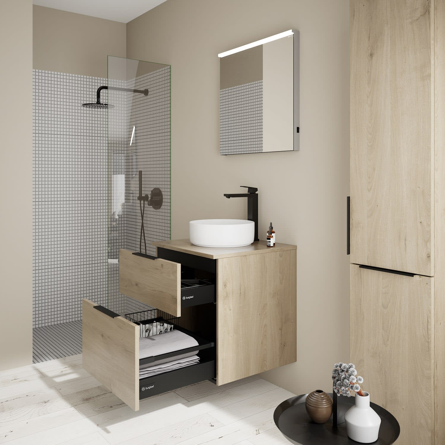 burgbad Eqio Waschtischkombination mit Keramik-Aufsatzwaschtisch 60 cm, Griff G0200