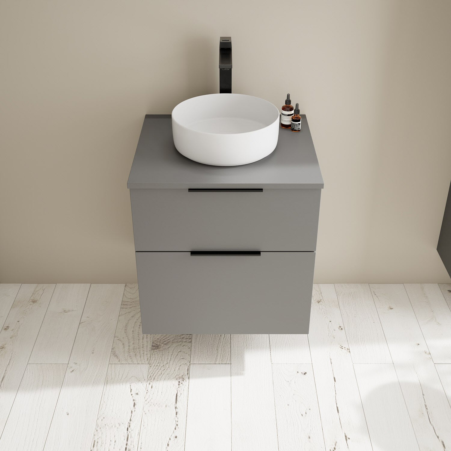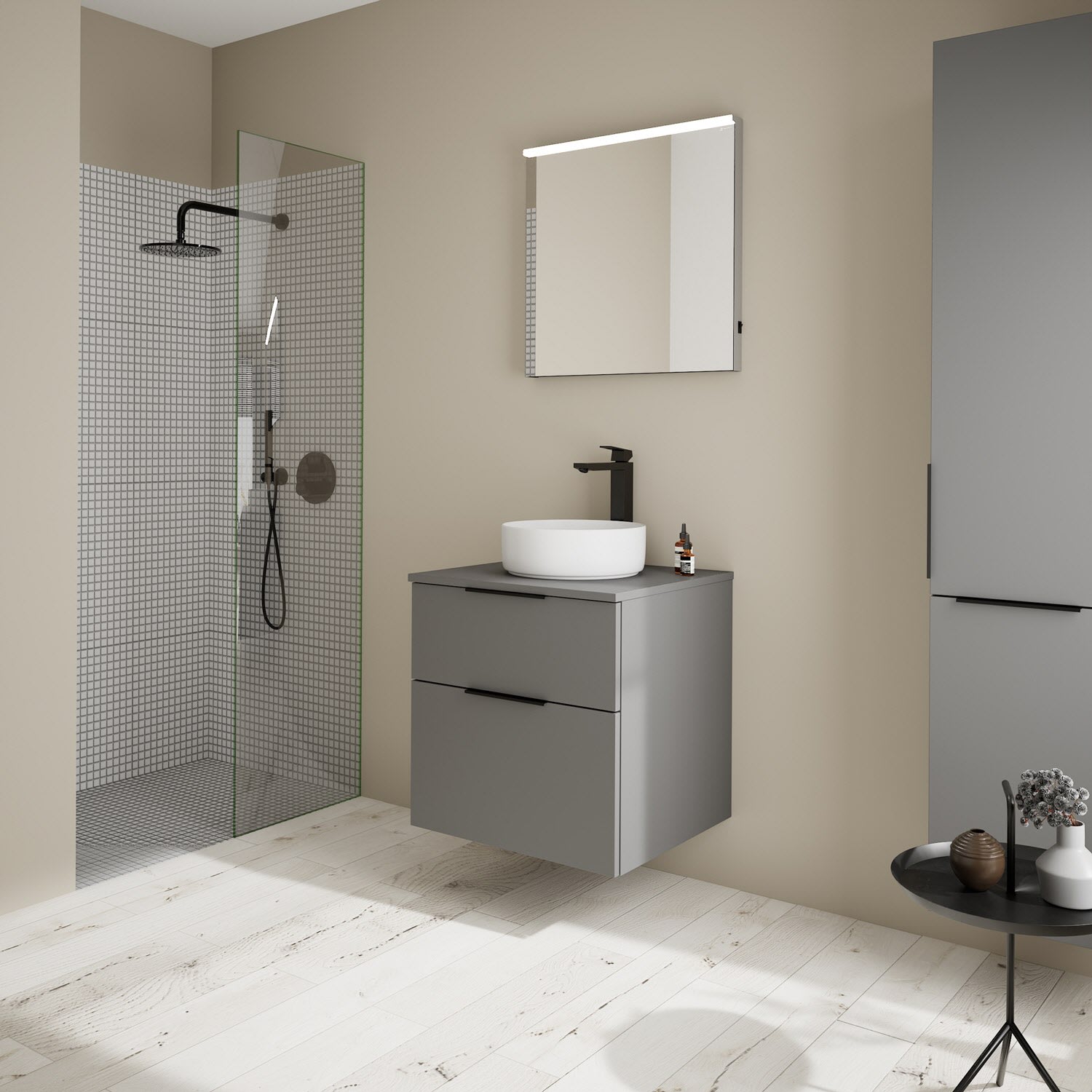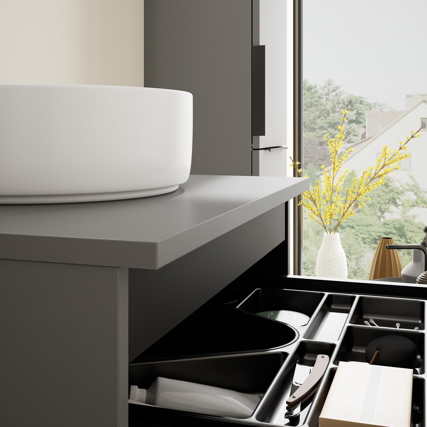 burgbad Eqio Waschtischkombination mit Keramik-Aufsatzwaschtisch 60 cm, Griff G0200