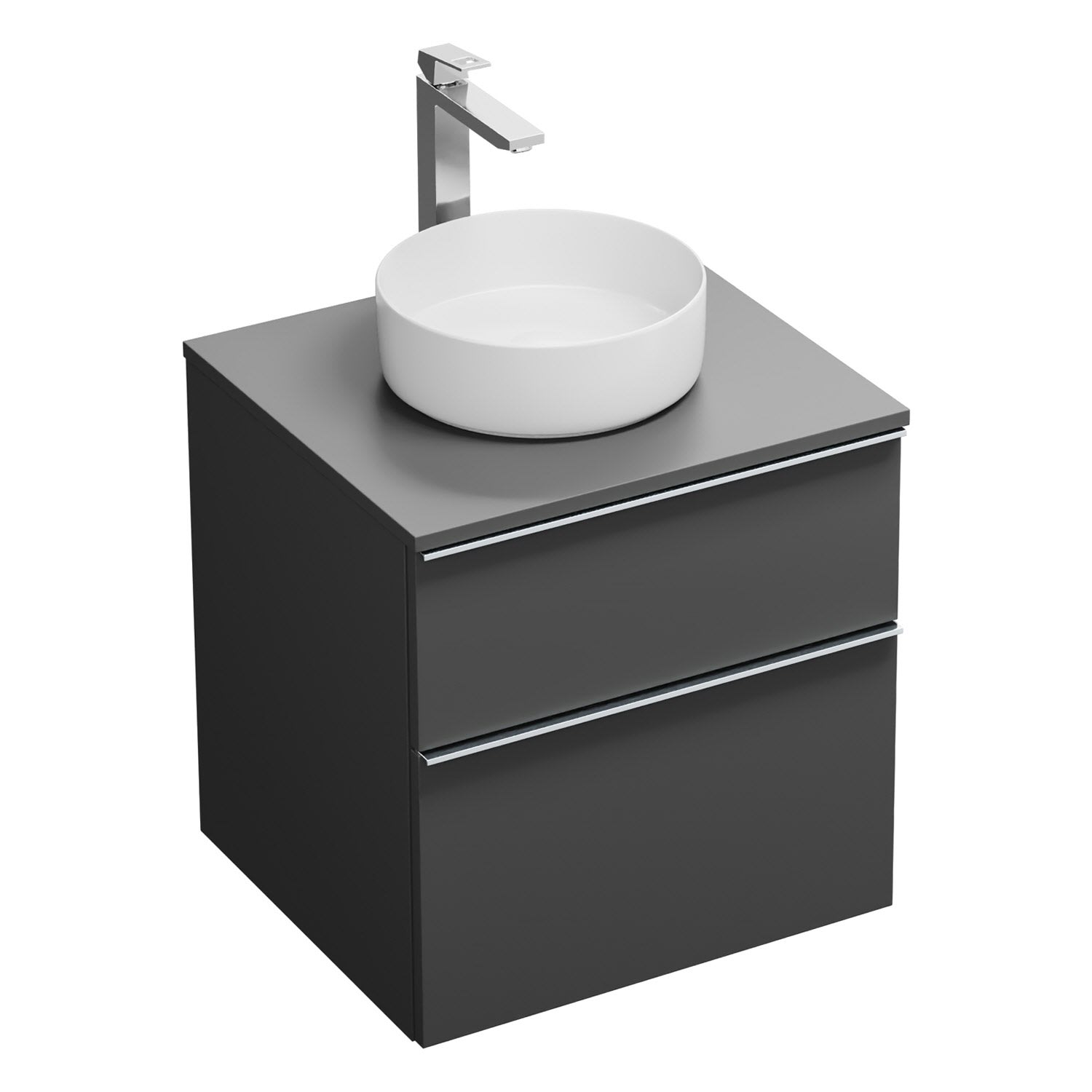burgbad Eqio Waschtischkombination mit Keramik-Aufsatzwaschtisch 60 cm, Griffleiste G0251