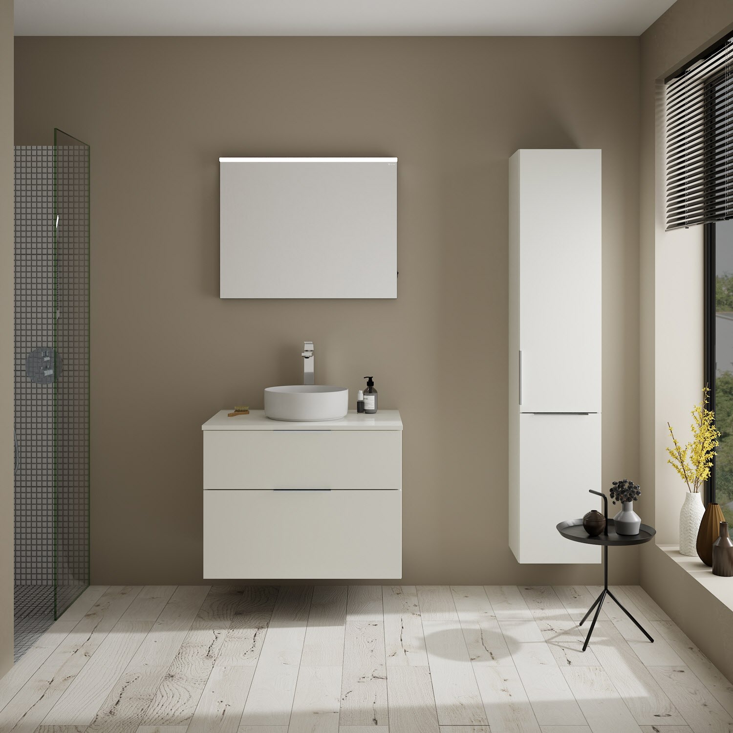 burgbad Eqio Waschtischkombination mit Keramik-Aufsatzwaschtisch 80 cm, mit Griff G0146