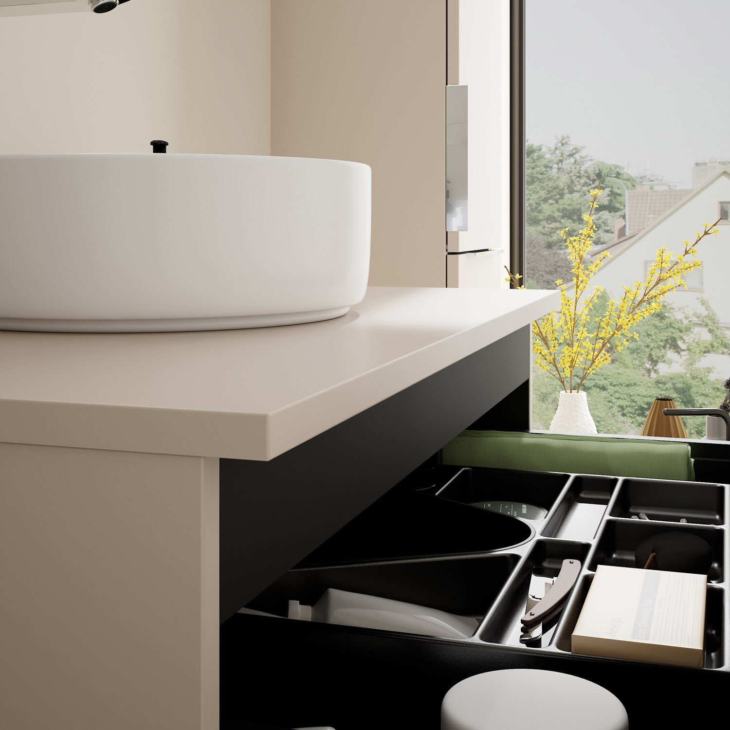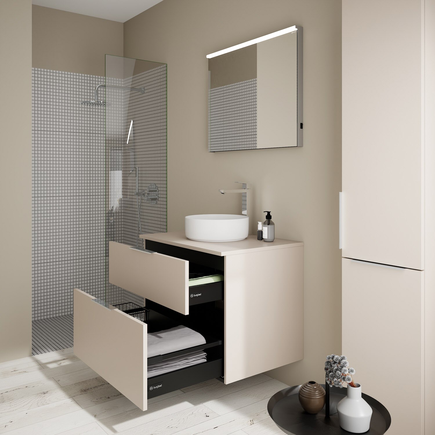 burgbad Eqio Waschtischkombination mit Keramik-Aufsatzwaschtisch 80 cm, mit Griff G0146