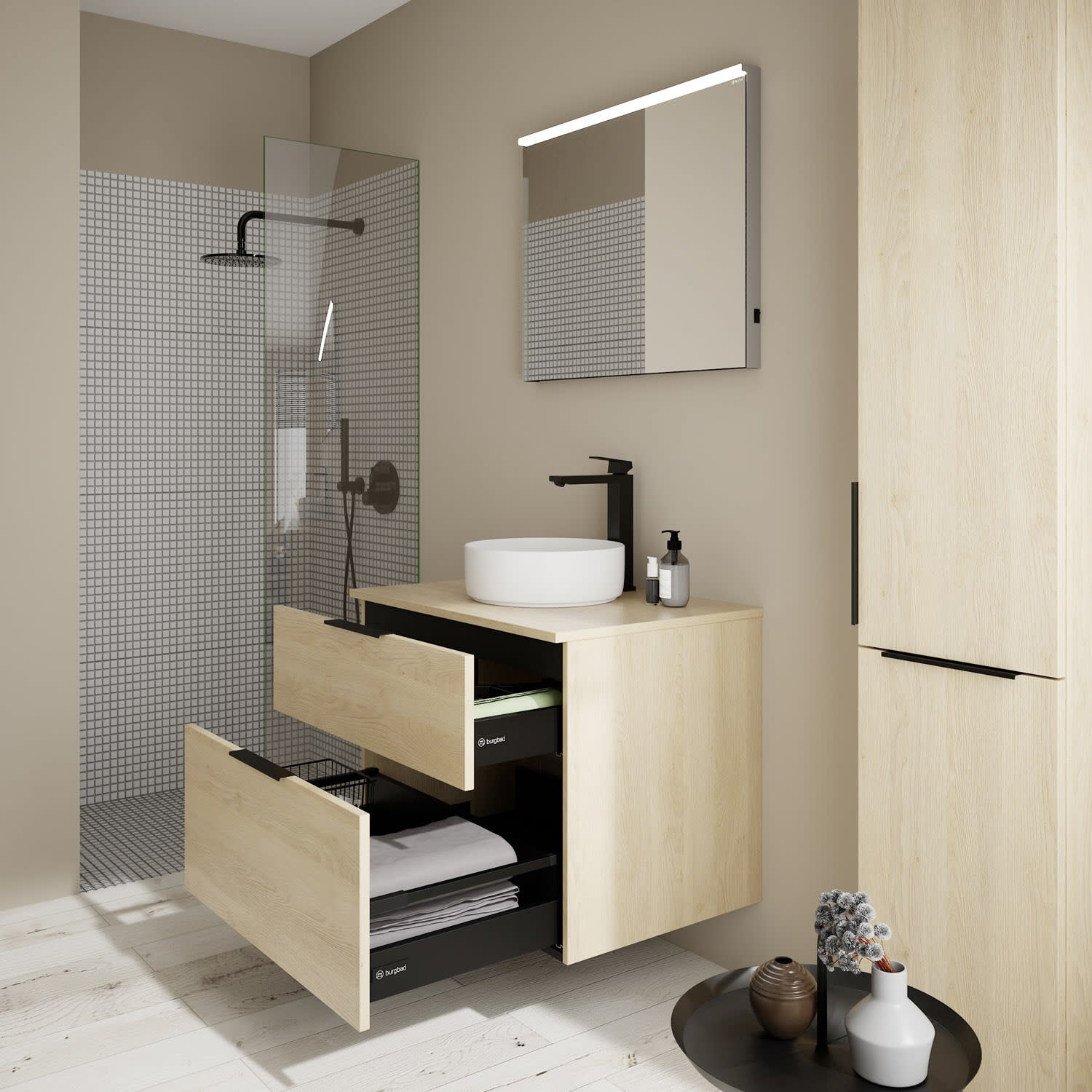 burgbad Eqio Waschtischkombination mit Keramik-Aufsatzwaschtisch 80 cm, mit Griff G0146
