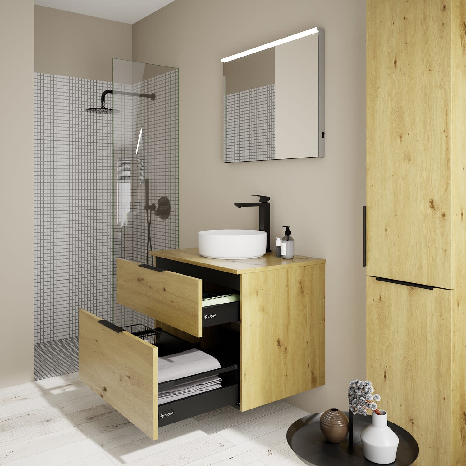 burgbad Eqio Waschtischkombination mit Keramik-Aufsatzwaschtisch 80 cm, mit Griff G0146