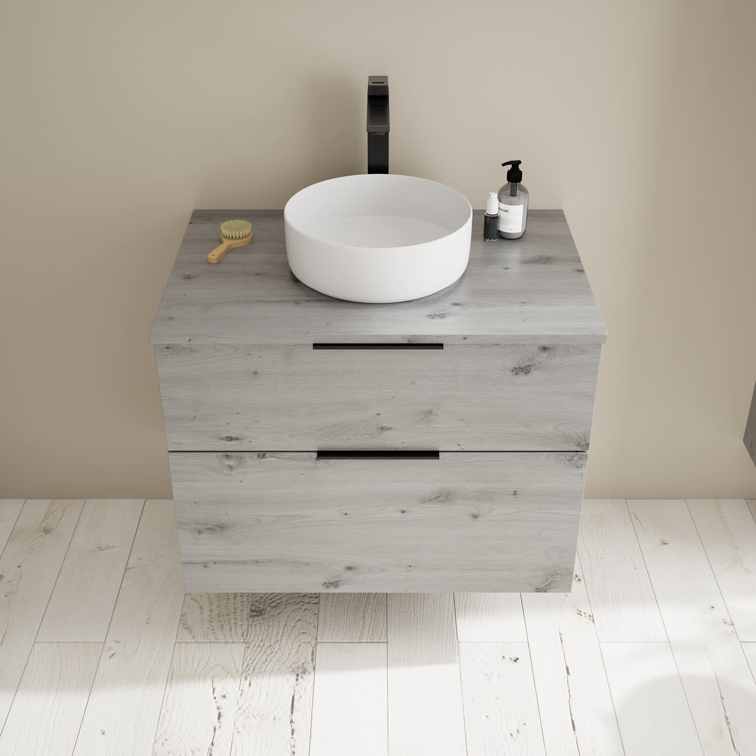 burgbad Eqio Waschtischkombination mit Keramik-Aufsatzwaschtisch 80 cm, mit Griff G0146