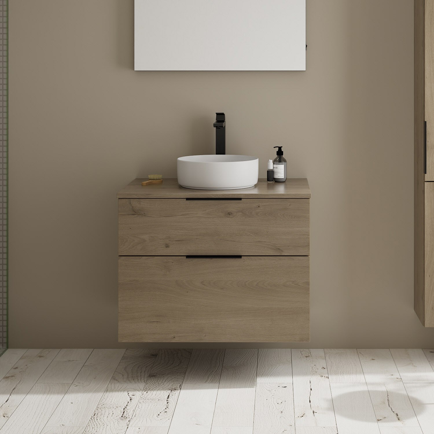 burgbad Eqio Waschtischkombination mit Keramik-Aufsatzwaschtisch 80 cm, mit Griff G0200