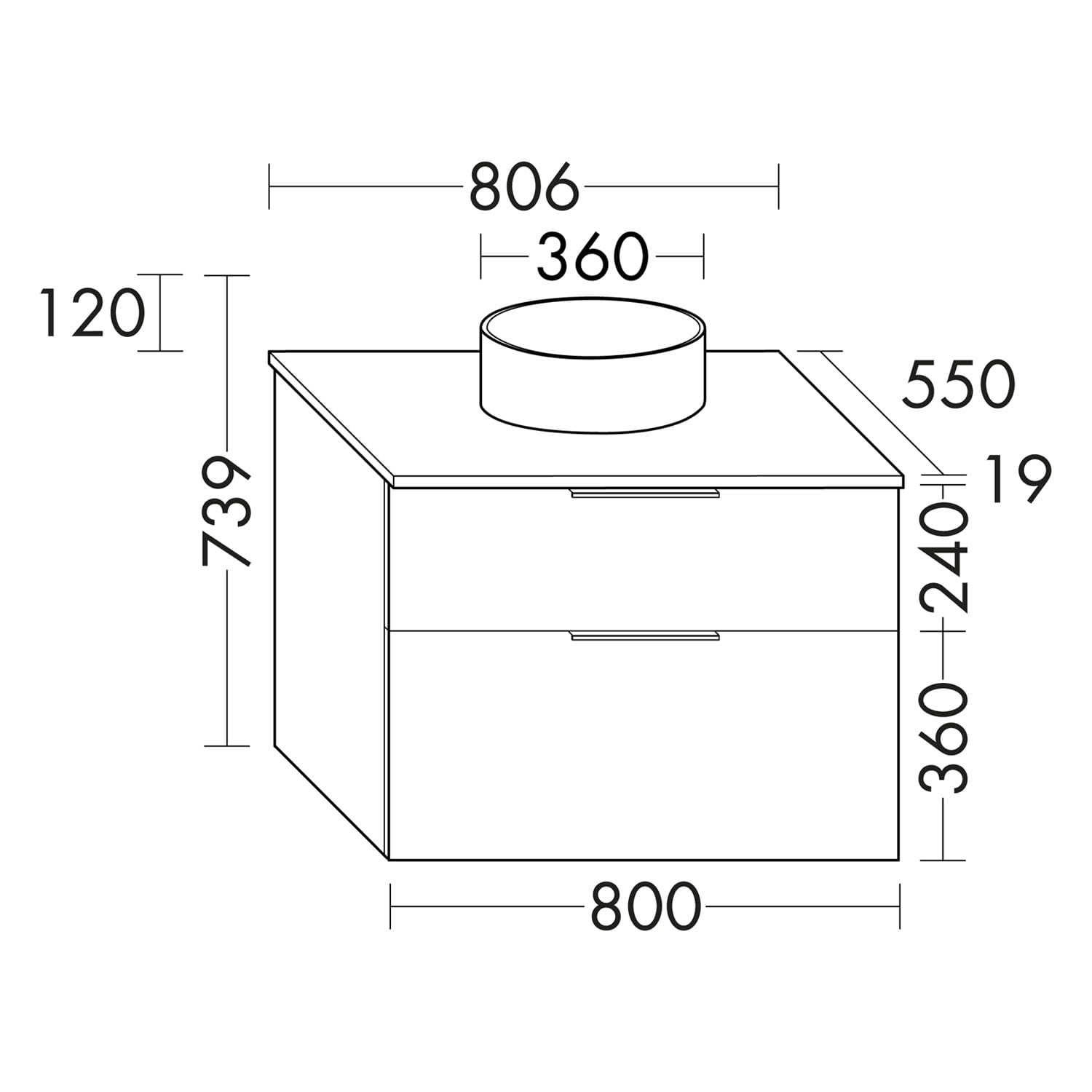 burgbad Eqio Waschtischkombination mit Keramik-Aufsatzwaschtisch 80 cm, mit Griffleiste G0251