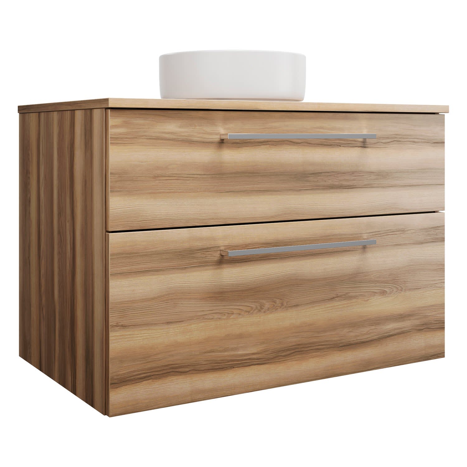 burgbad Eqio Waschtischkombination mit Keramik-Aufsatzwaschtisch 90 cm, mit Stangengriff P95