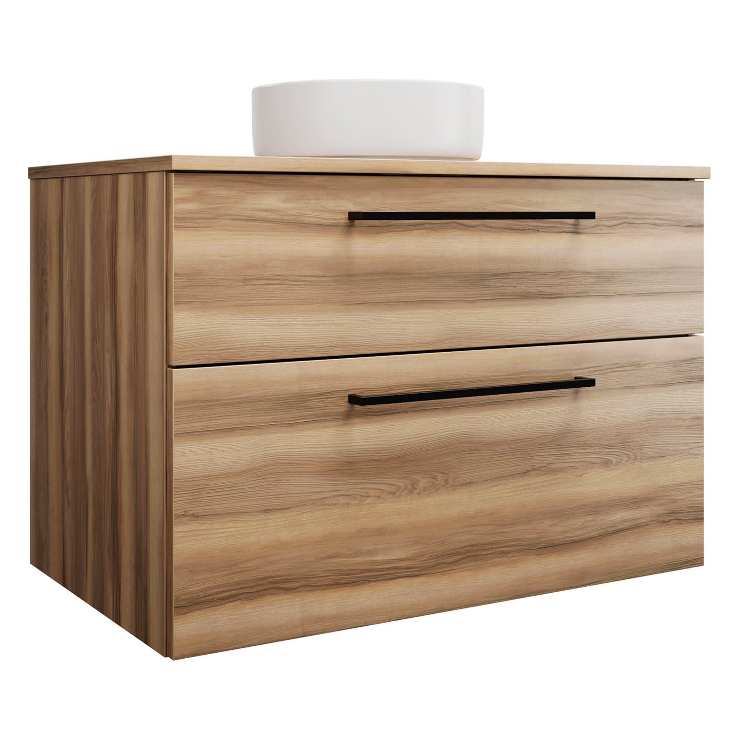 burgbad Eqio Waschtischkombination mit Keramik-Aufsatzwaschtisch 90 cm, mit Stangengriff G0234