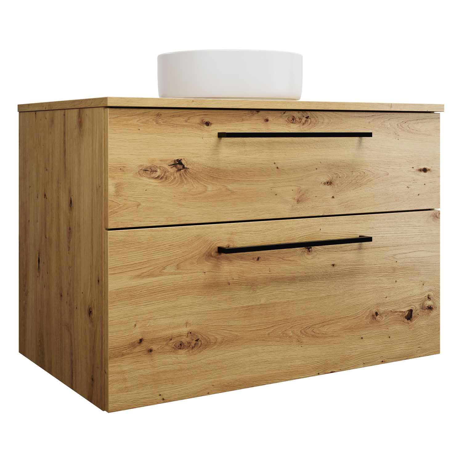 burgbad Eqio Waschtischkombination mit Keramik-Aufsatzwaschtisch 90 cm, mit Stangengriff G0234