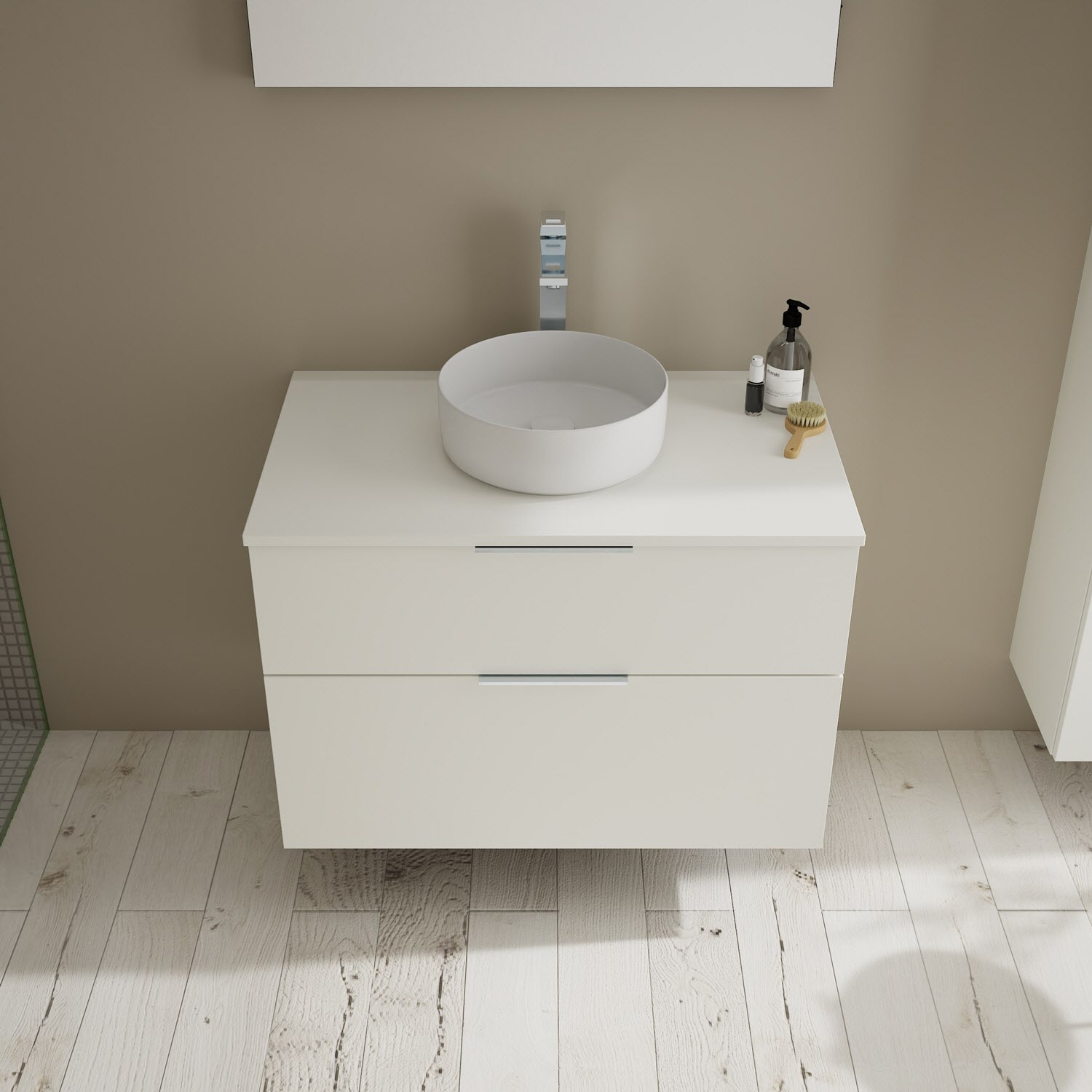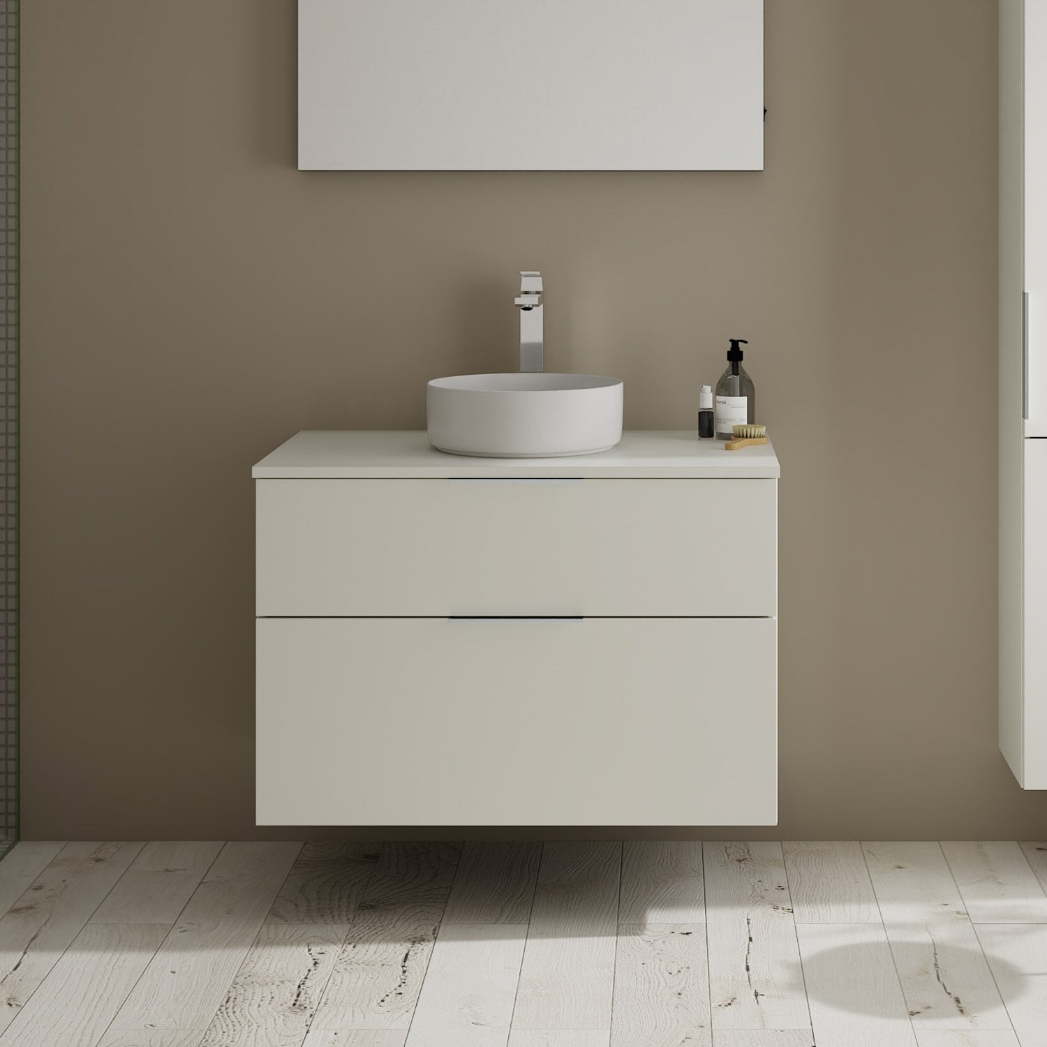 burgbad Eqio Waschtischkombination mit Keramik-Aufsatzwaschtisch 90 cm, mit Griff G0146