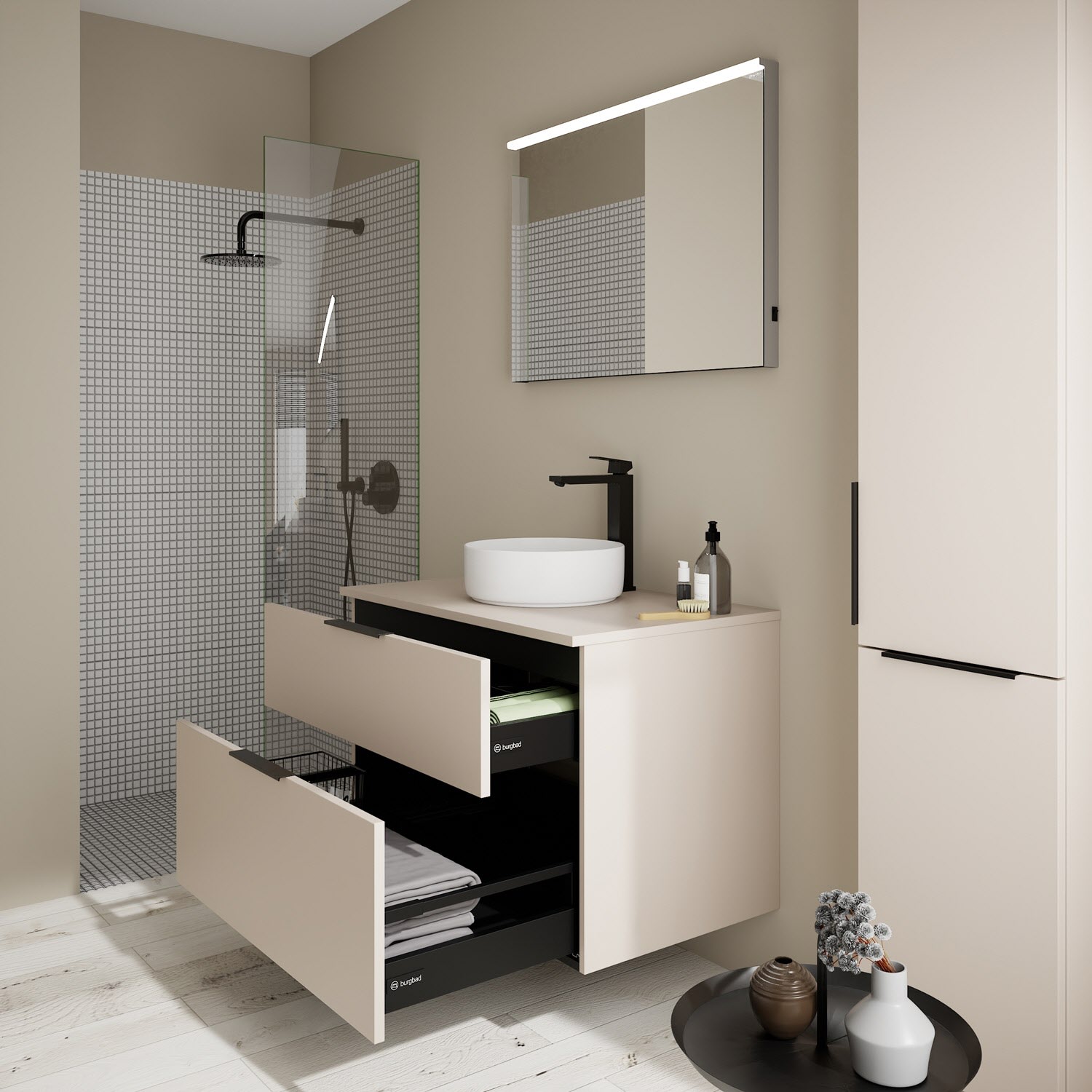 burgbad Eqio Waschtischkombination mit Keramik-Aufsatzwaschtisch 90 cm, mit Griff G0200
