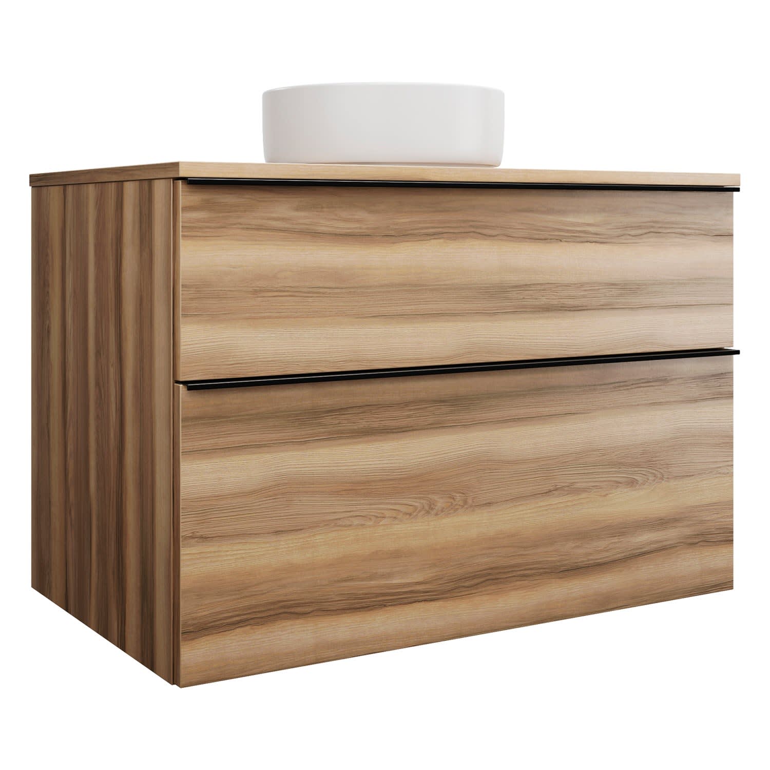 burgbad Eqio Waschtischkombination mit Keramik-Aufsatzwaschtisch 90 cm, mit Griffleiste G0252