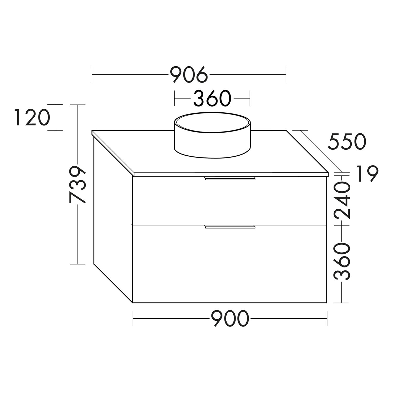 burgbad Eqio Waschtischkombination mit Keramik-Aufsatzwaschtisch 90 cm, mit Griffleiste G0252