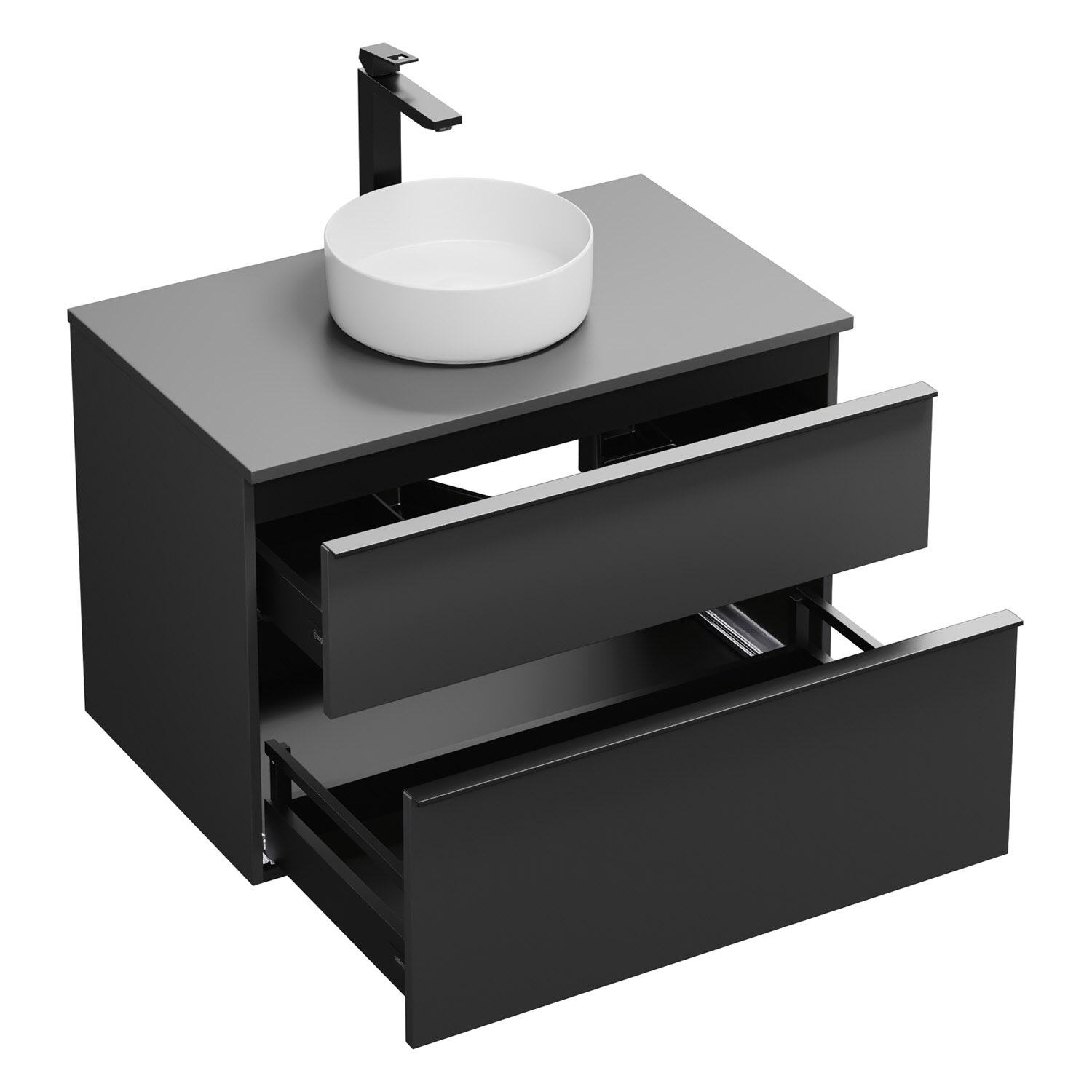 - 1 Schublade oben, 35 cm tief, mit Siphonausschnitt und Inneneinteilung