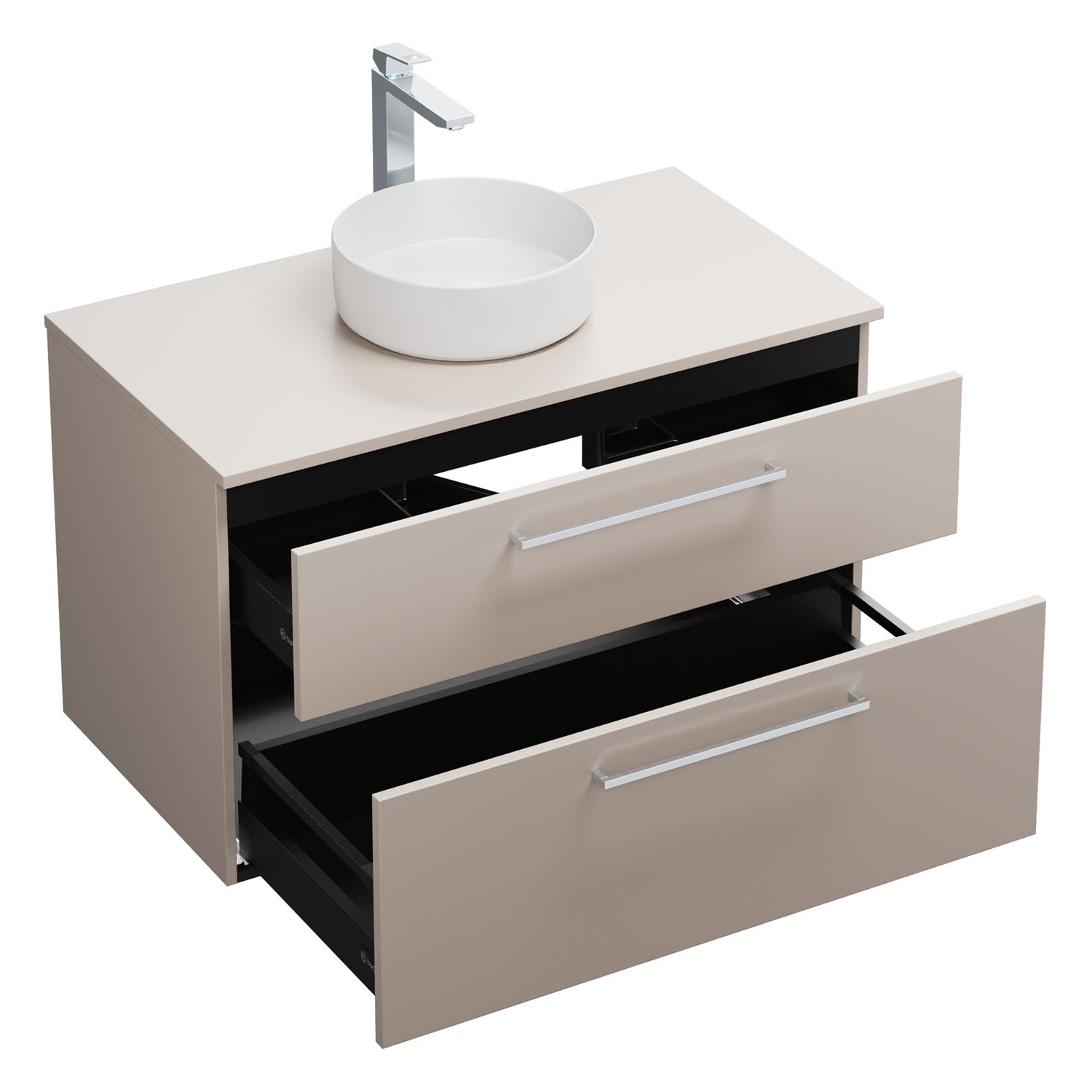 burgbad Eqio Waschtischkombination mit Keramik-Aufsatzwaschtisch 100 cm, mit Stangengriff P95