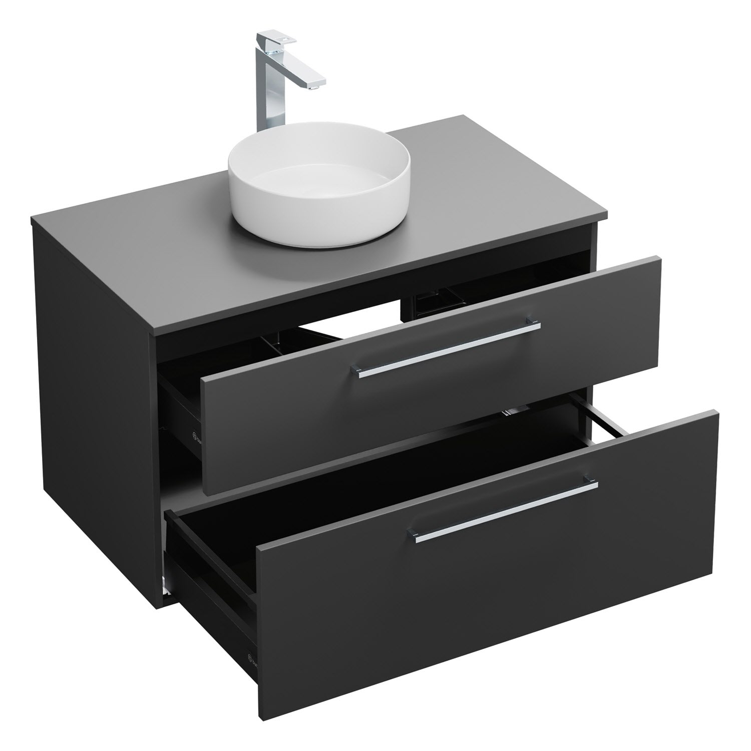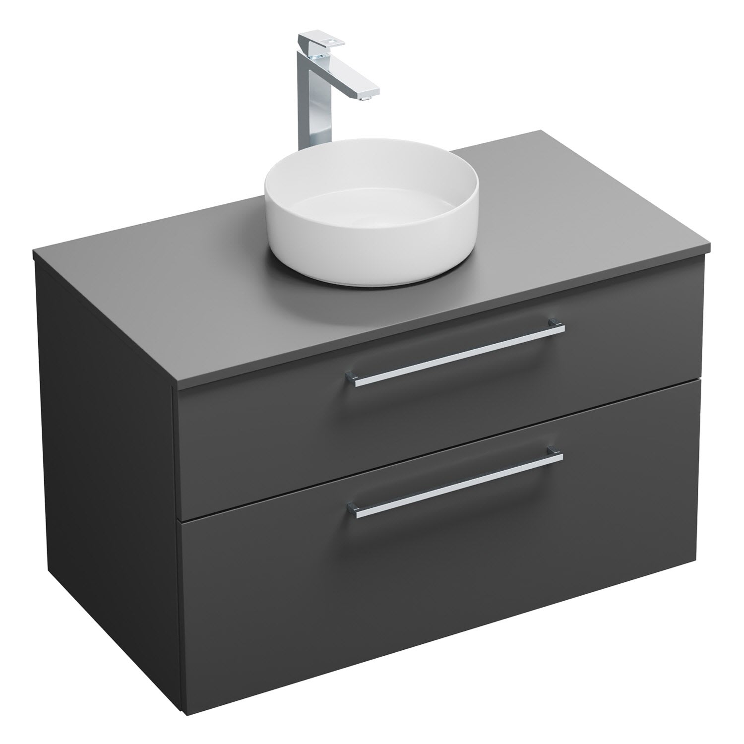 burgbad Eqio Waschtischkombination mit Keramik-Aufsatzwaschtisch 100 cm, mit Stangengriff P95