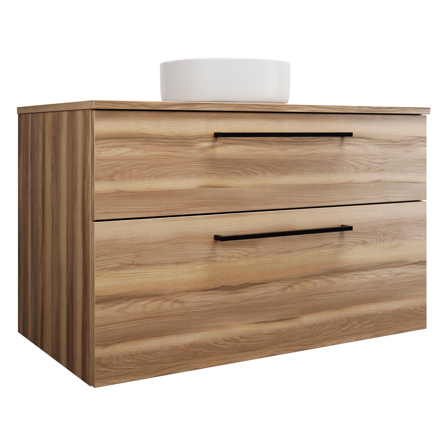 burgbad Eqio Waschtischkombination mit Keramik-Aufsatzwaschtisch 100 cm, mit Stangengriff G0234