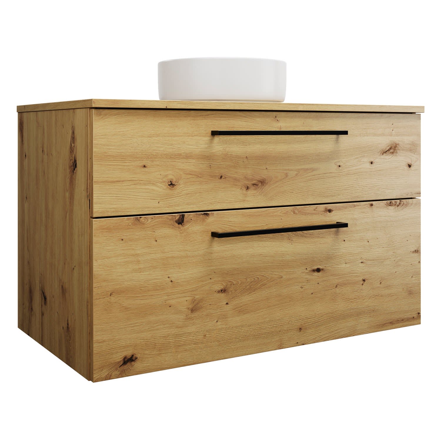 burgbad Eqio Waschtischkombination mit Keramik-Aufsatzwaschtisch 100 cm, mit Stangengriff G0234