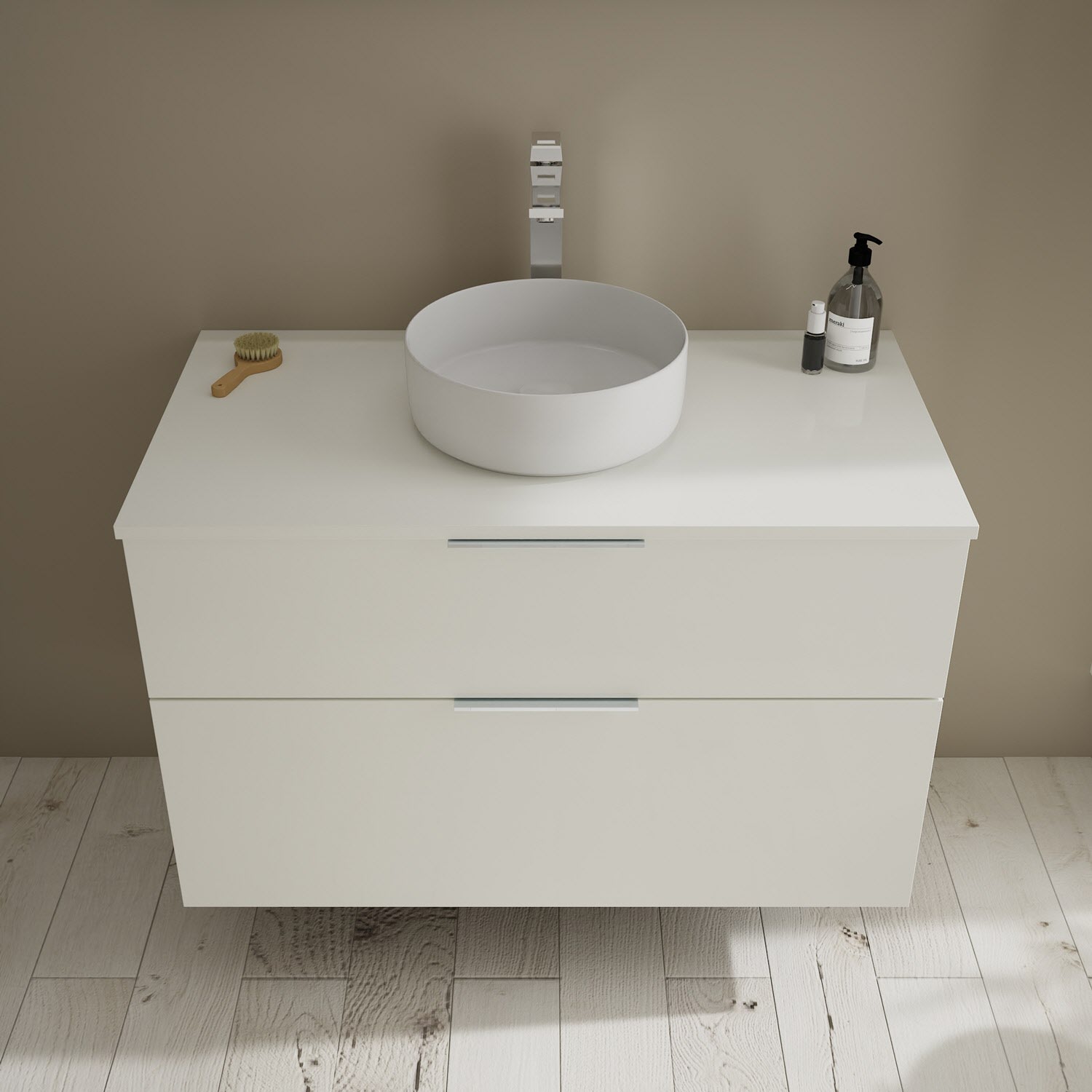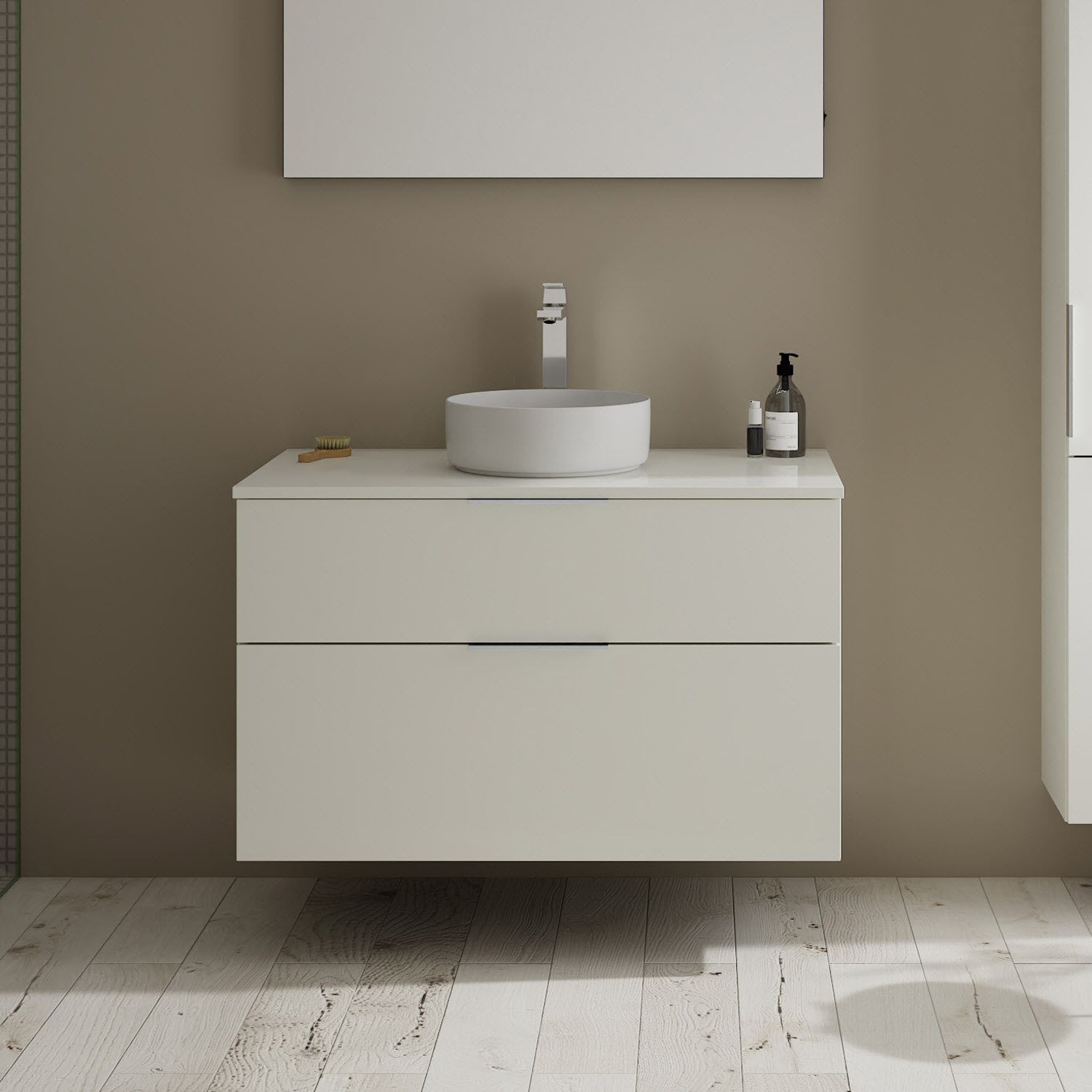 burgbad Eqio Waschtischkombination mit Keramik-Aufsatzwaschtisch 100 cm, mit Griff G0146