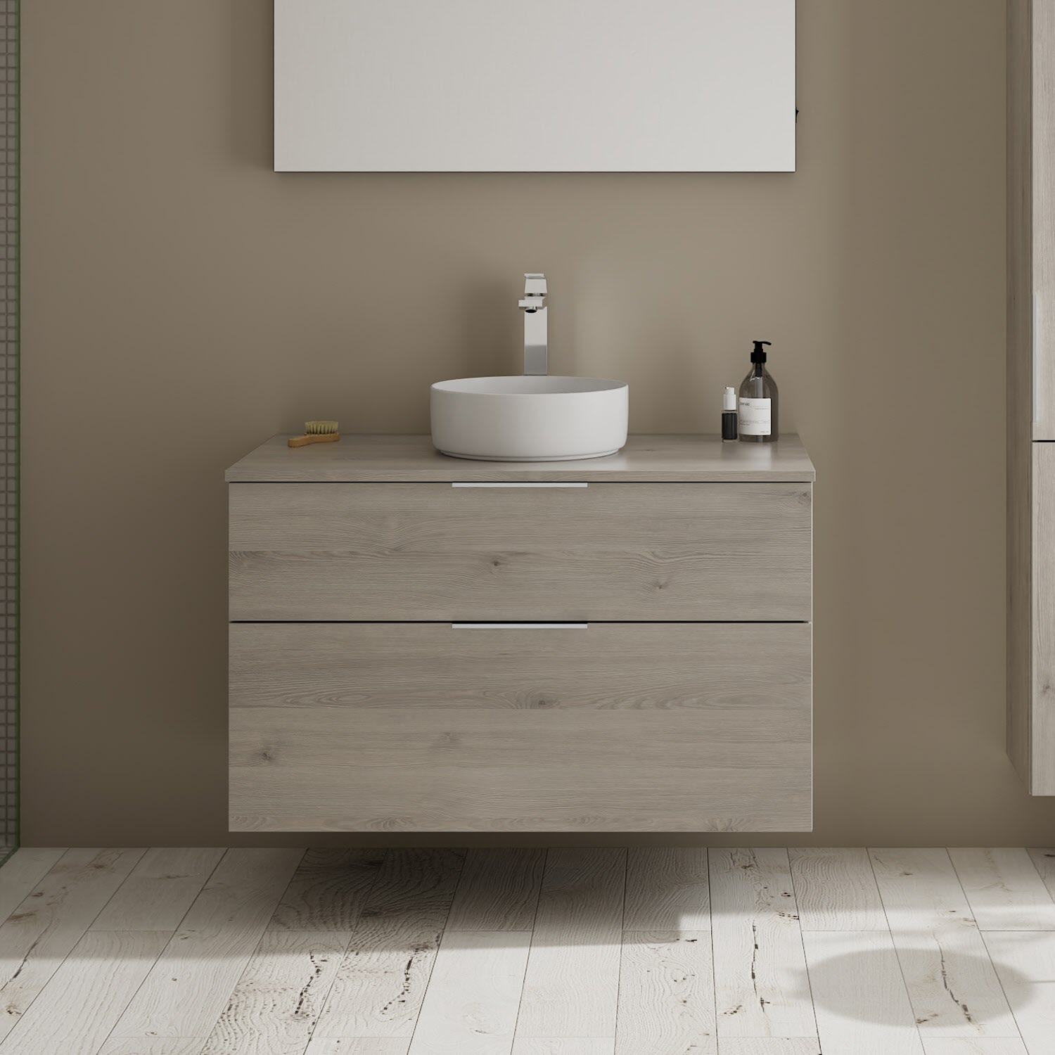 burgbad Eqio Waschtischkombination mit Keramik-Aufsatzwaschtisch 100 cm, mit Griff G0146