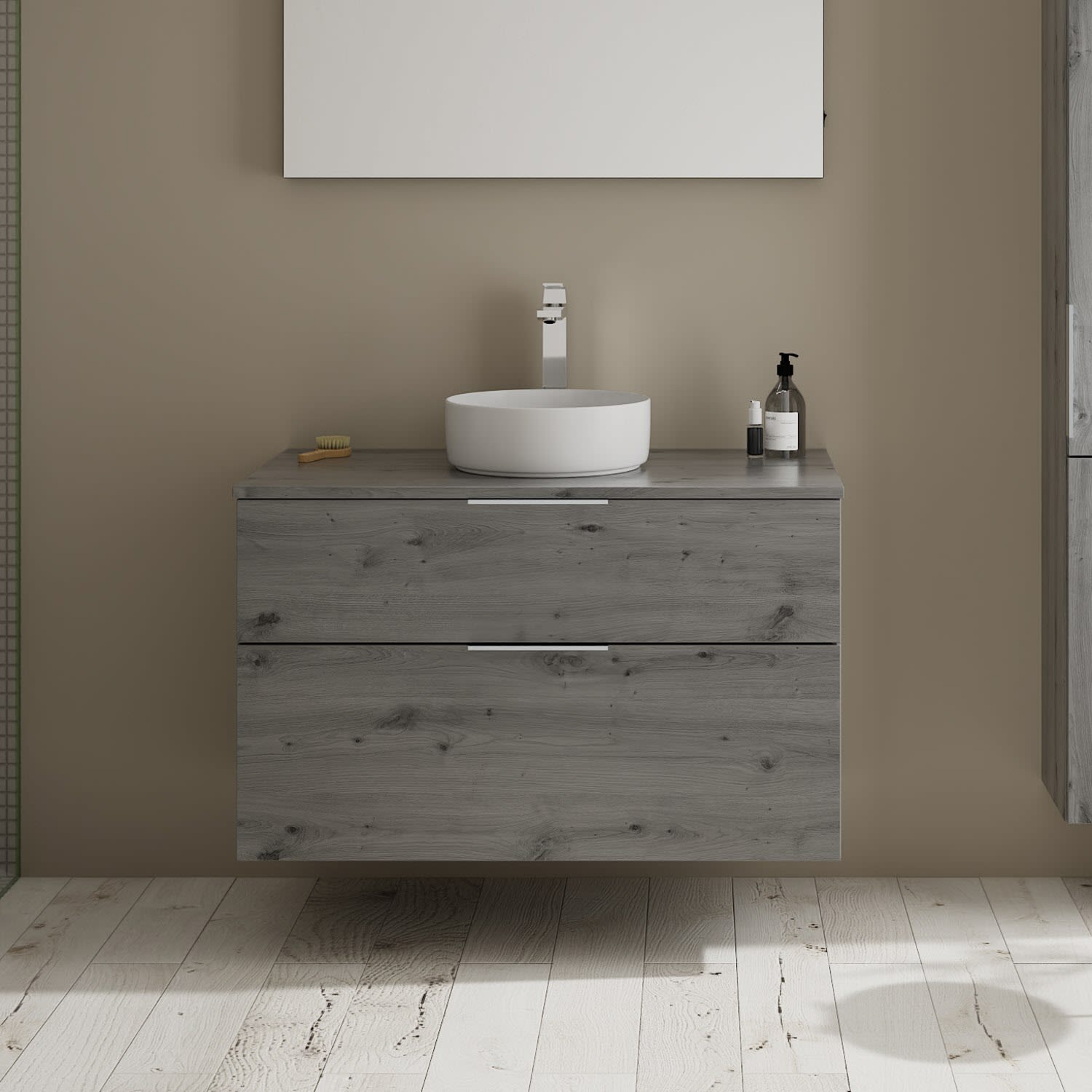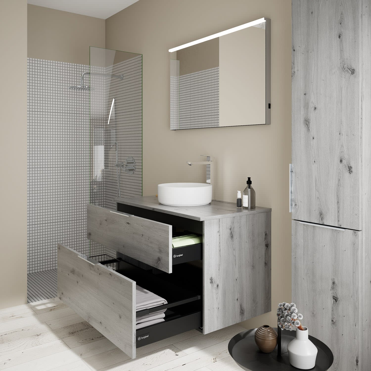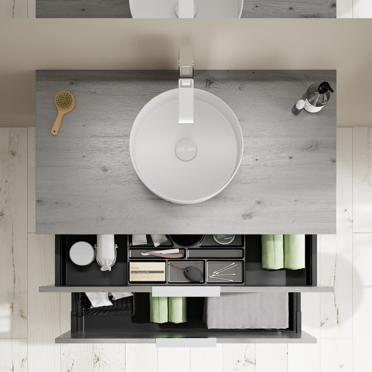 burgbad Eqio Waschtischkombination mit Keramik-Aufsatzwaschtisch 100 cm, mit Griff G0146