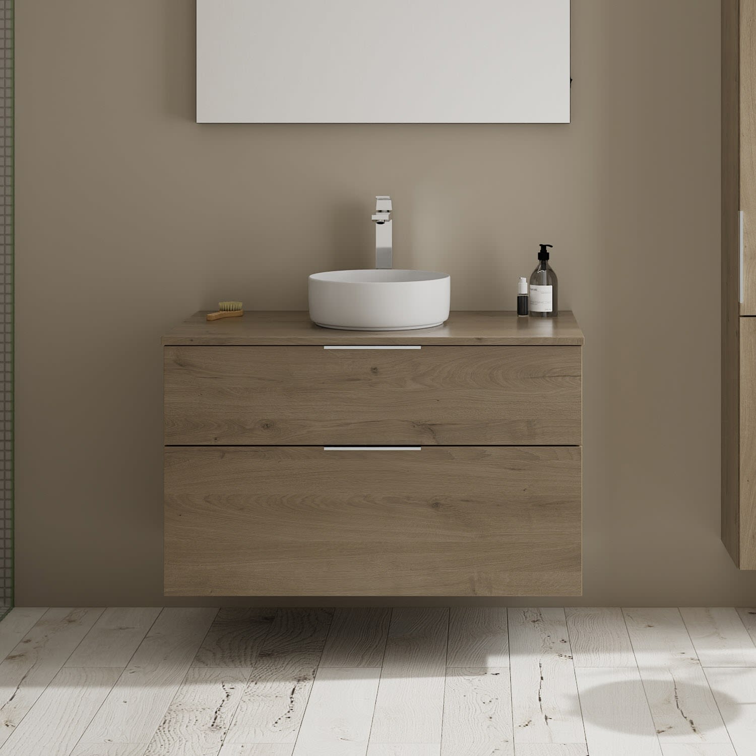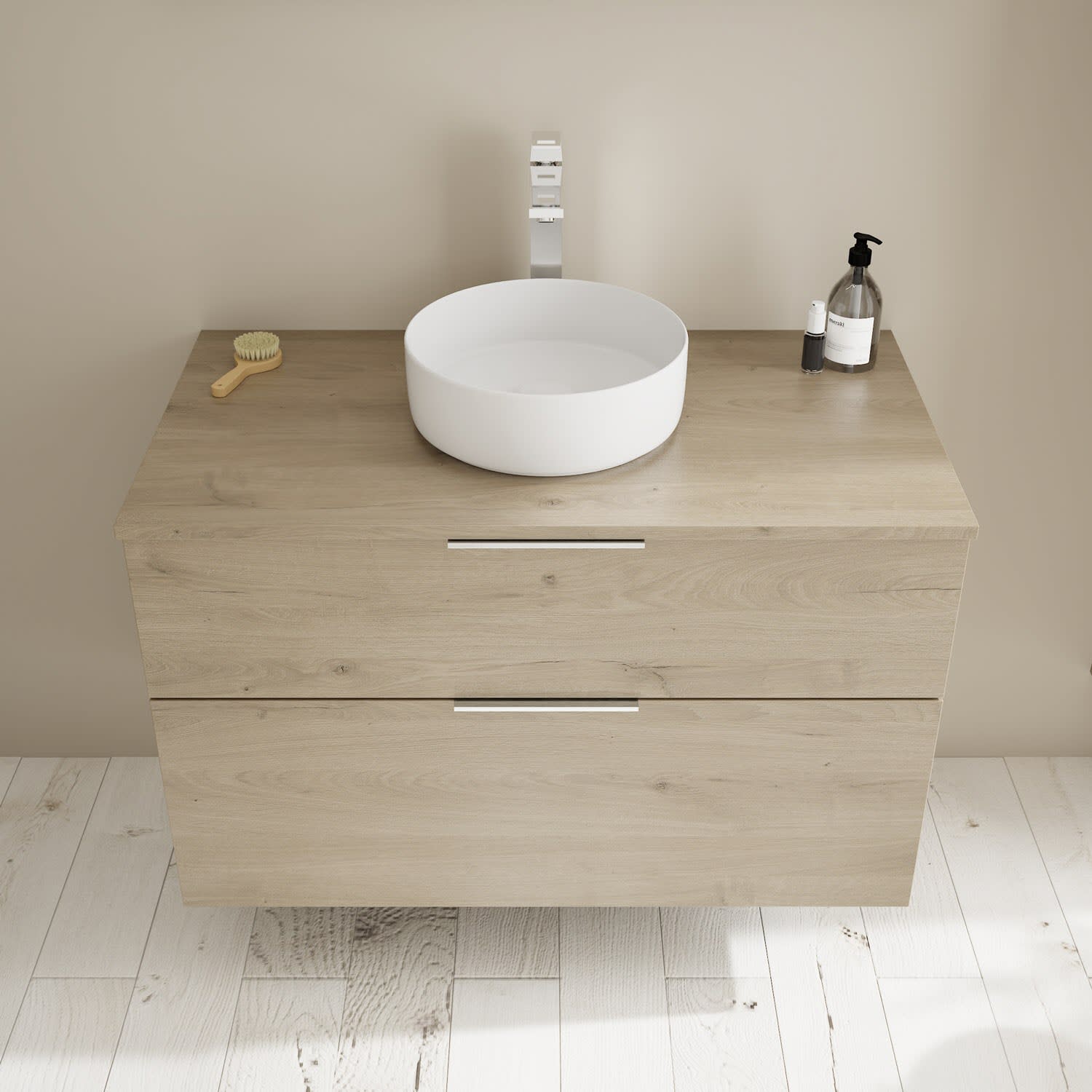 burgbad Eqio Waschtischkombination mit Keramik-Aufsatzwaschtisch 100 cm, mit Griff G0146