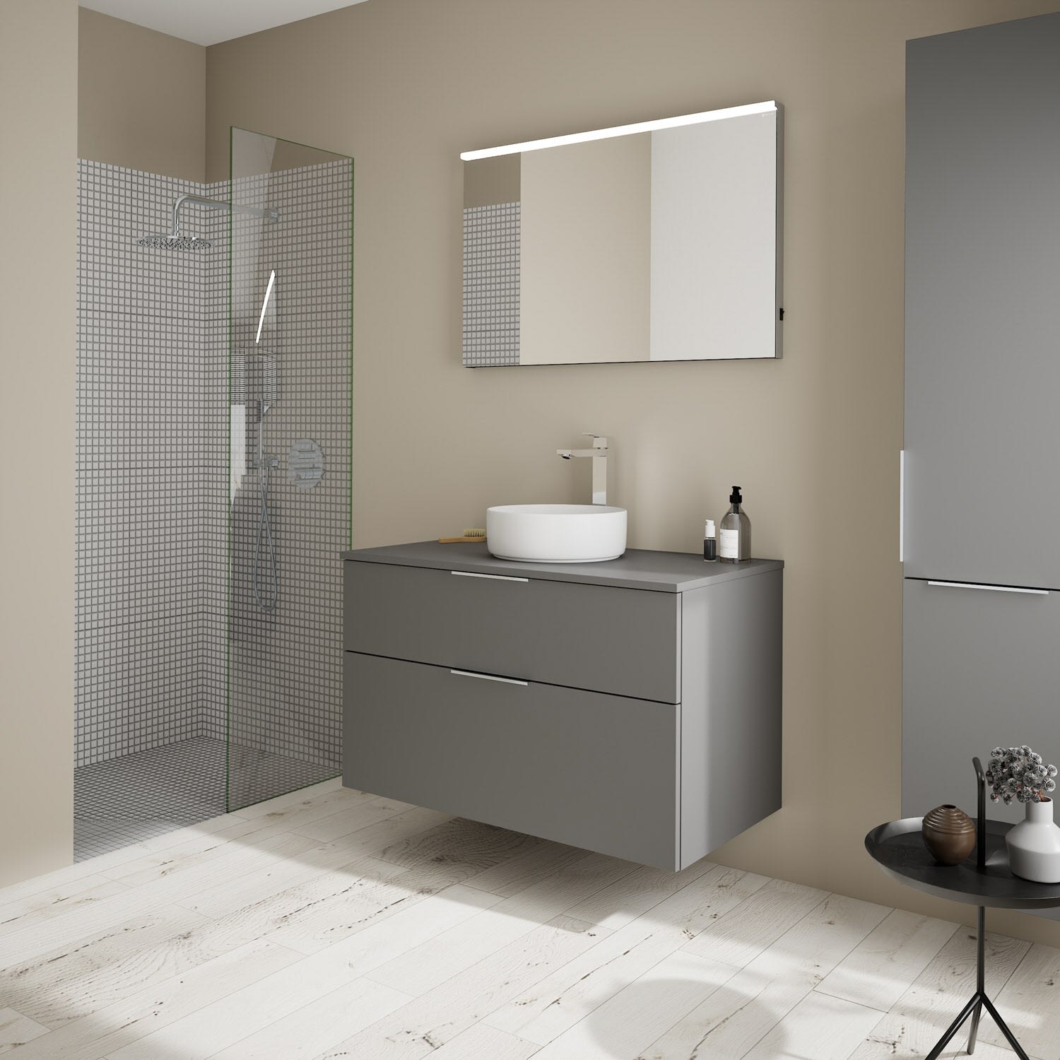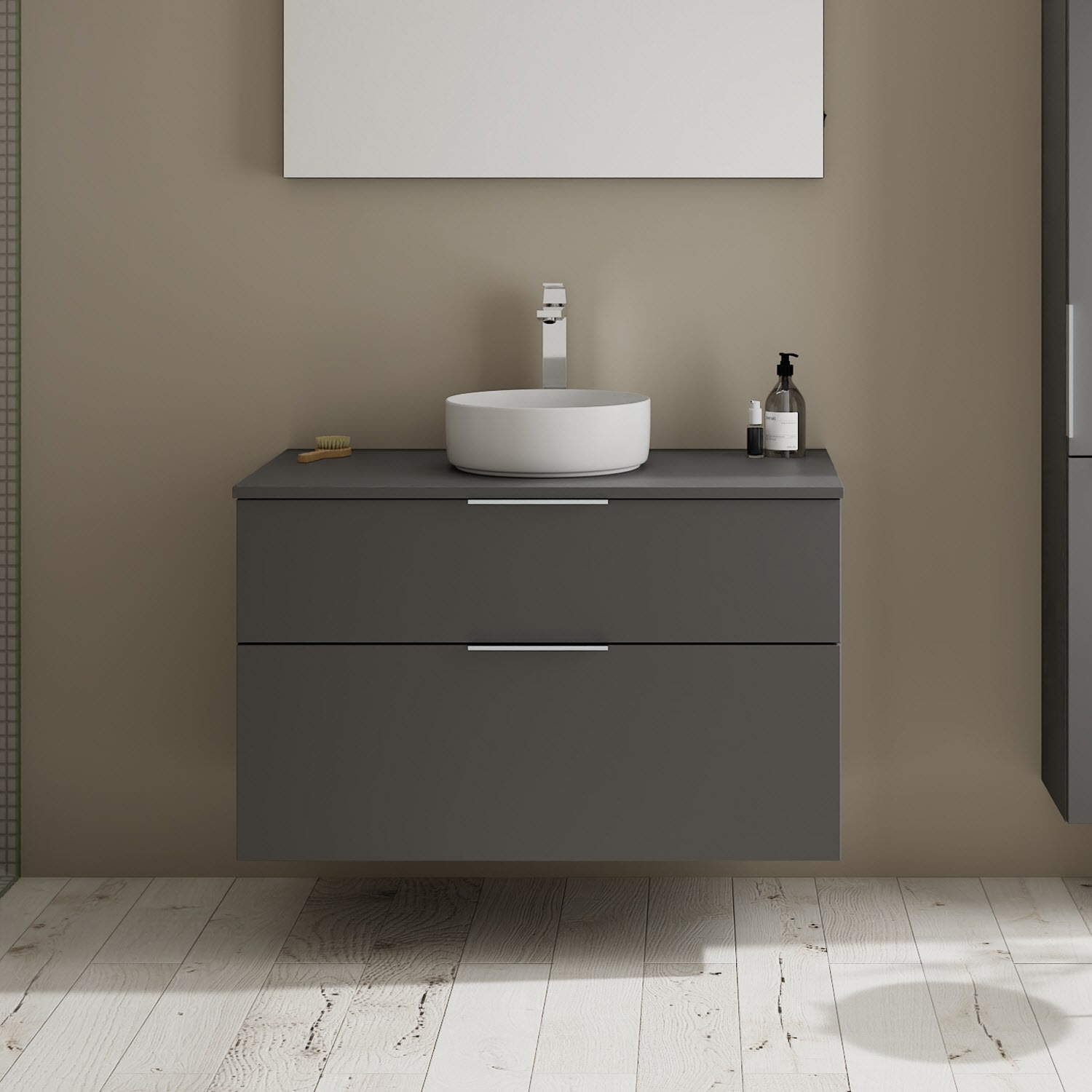 burgbad Eqio Waschtischkombination mit Keramik-Aufsatzwaschtisch 100 cm, mit Griff G0146