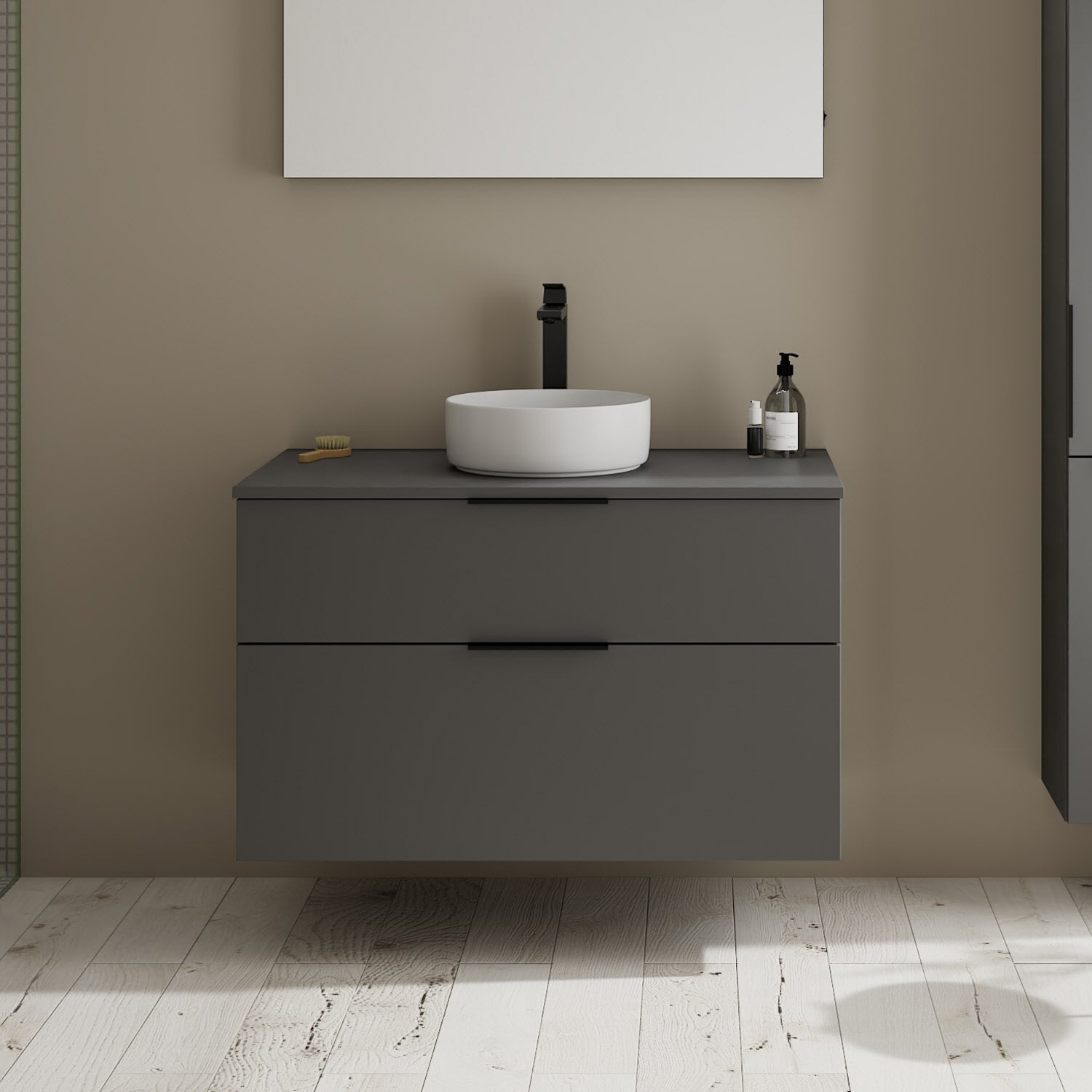 burgbad Eqio Waschtischkombination mit Keramik-Aufsatzwaschtisch 100 cm, mit Griff G0200