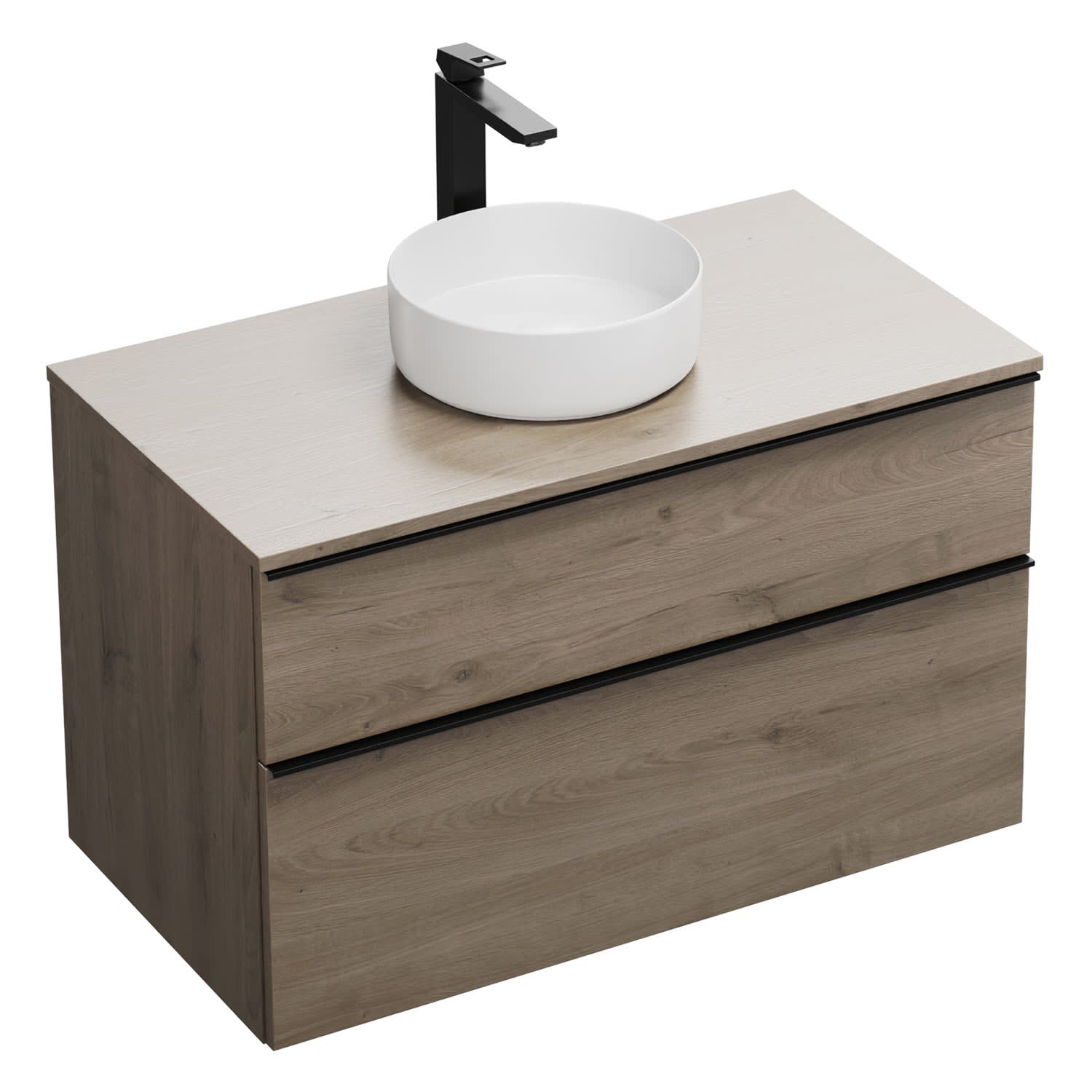 burgbad Eqio Waschtischkombination mit Keramik-Aufsatzwaschtisch 100 cm, mit Griffleiste G0252