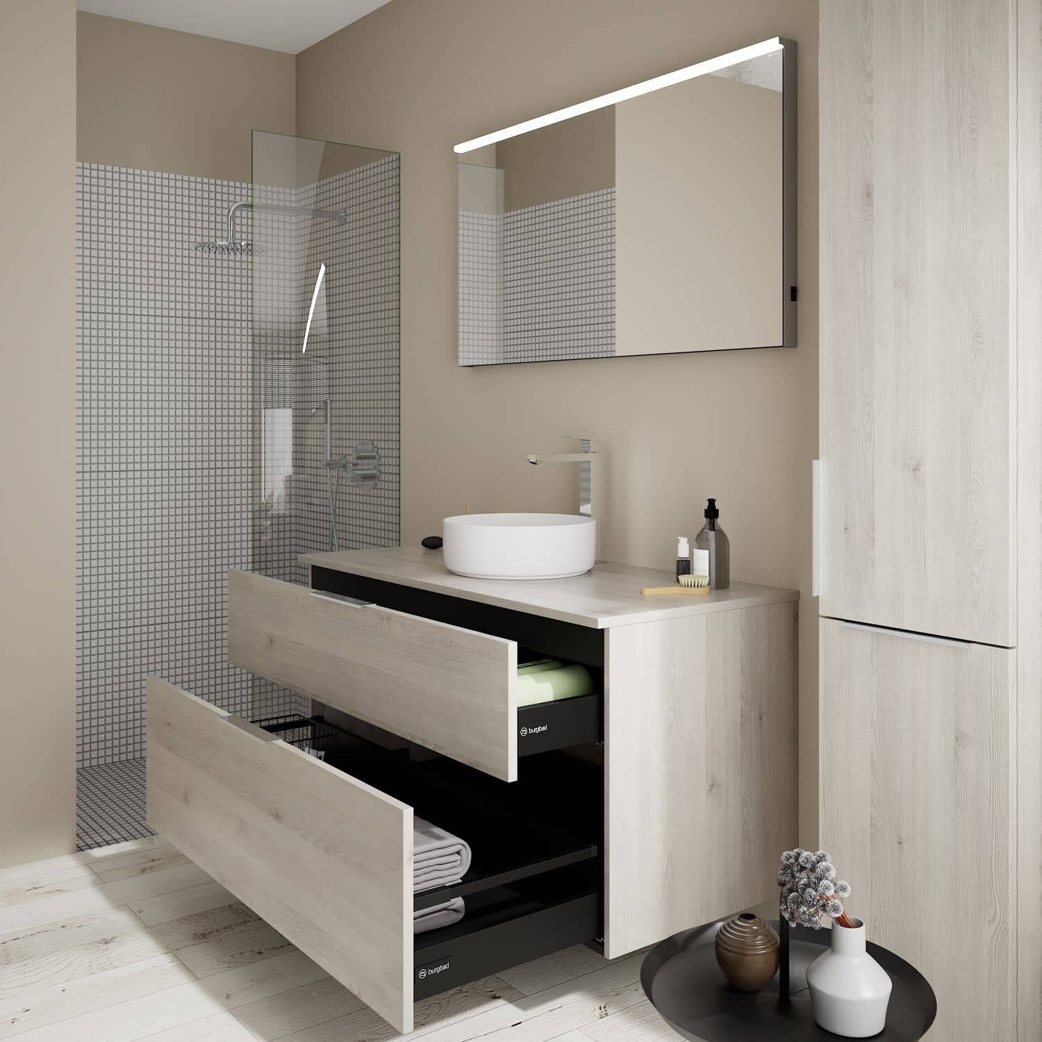 burgbad Eqio Waschtischkombination mit Keramik-Aufsatzwaschtisch 120 cm, mit Griff G0146