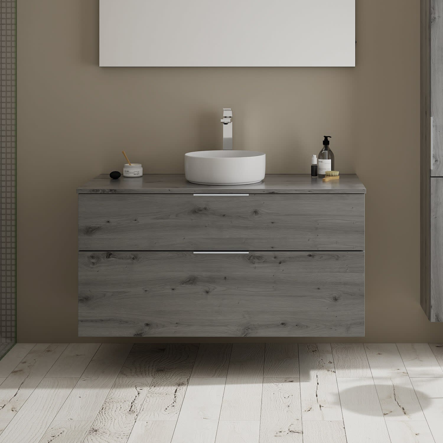 burgbad Eqio Waschtischkombination mit Keramik-Aufsatzwaschtisch 120 cm, mit Griff G0146