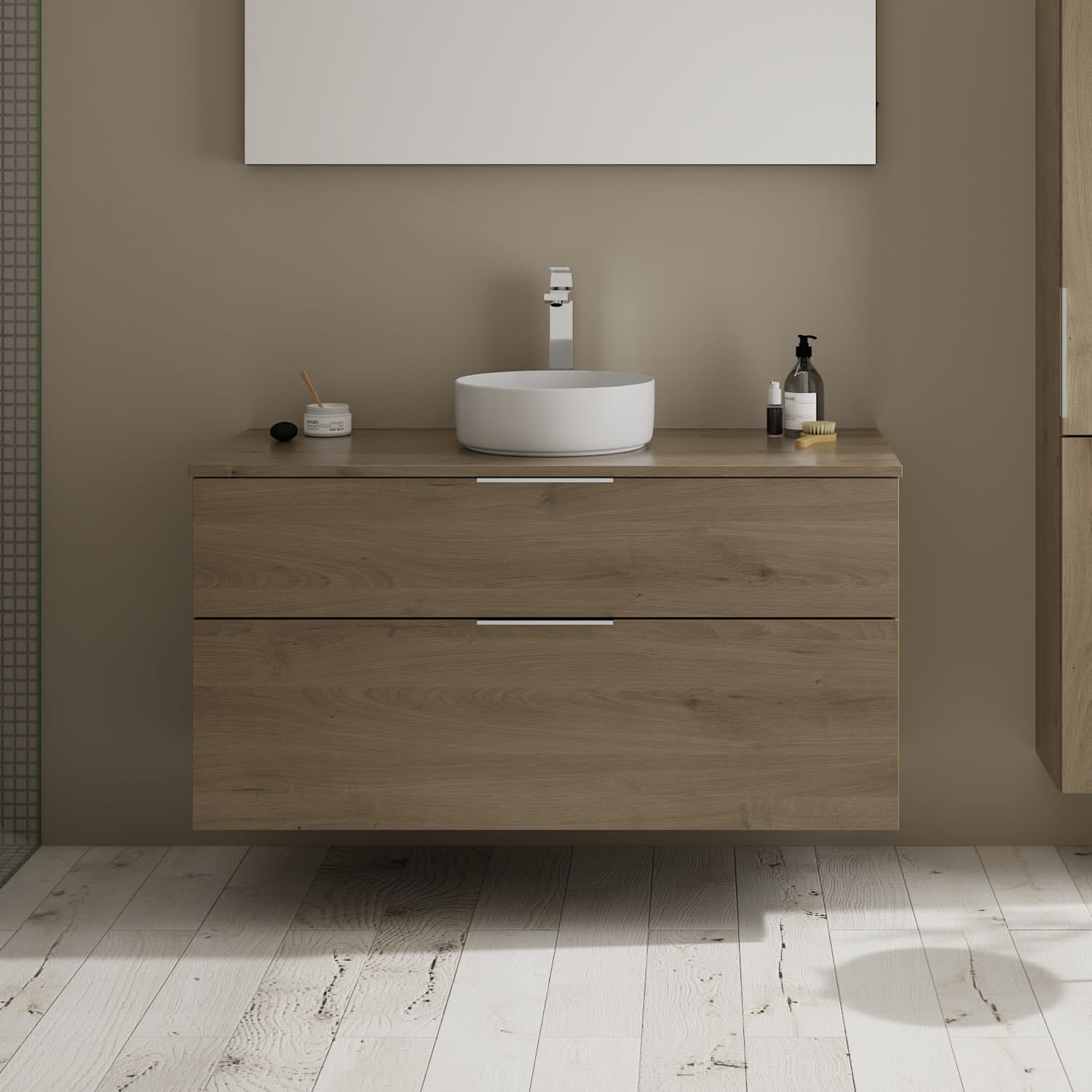 burgbad Eqio Waschtischkombination mit Keramik-Aufsatzwaschtisch 120 cm, mit Griff G0146