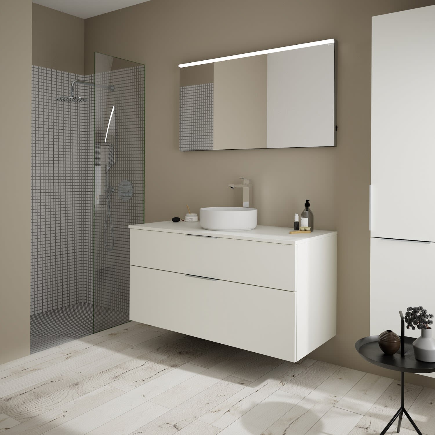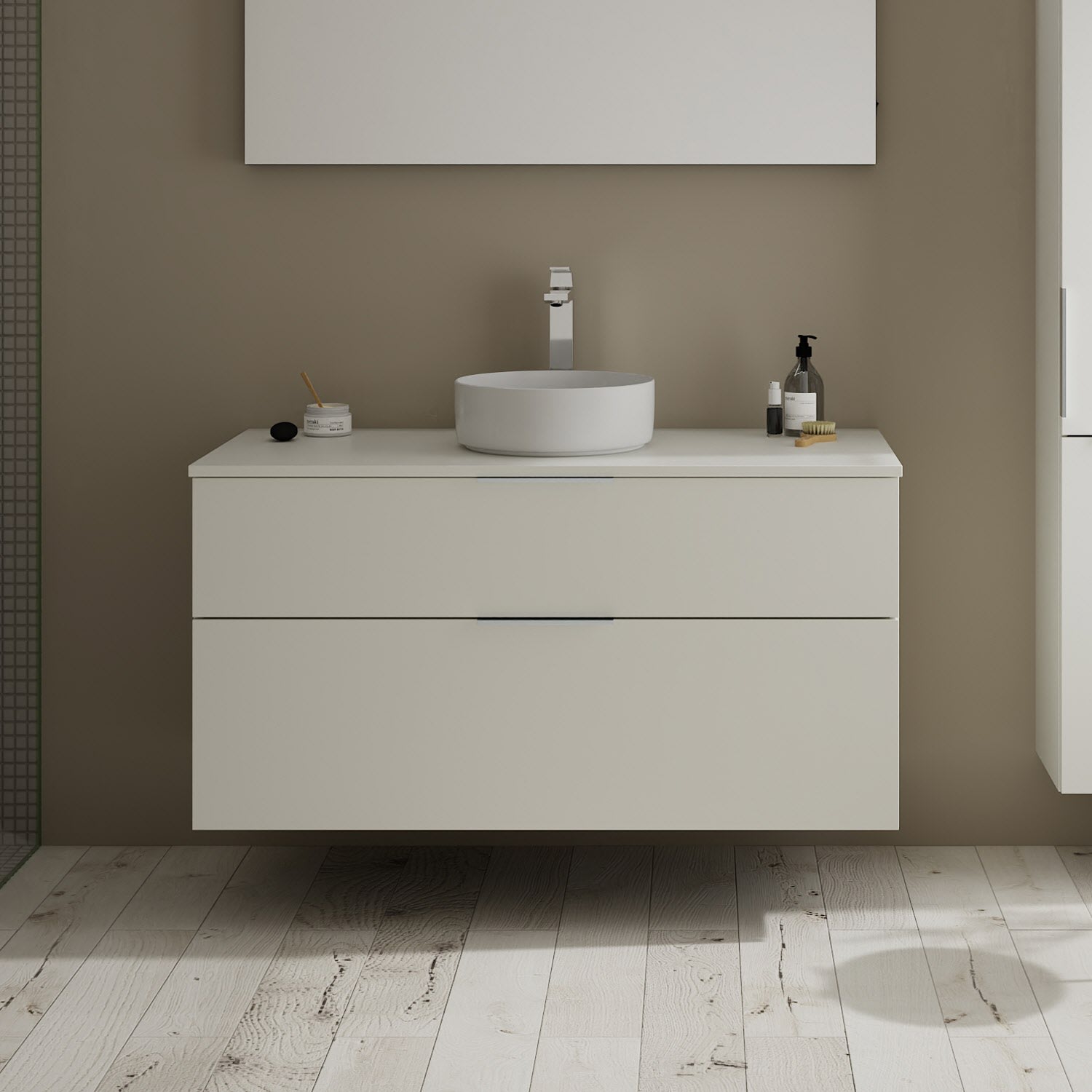 burgbad Eqio Waschtischkombination mit Keramik-Aufsatzwaschtisch 120 cm, mit Griff G0146