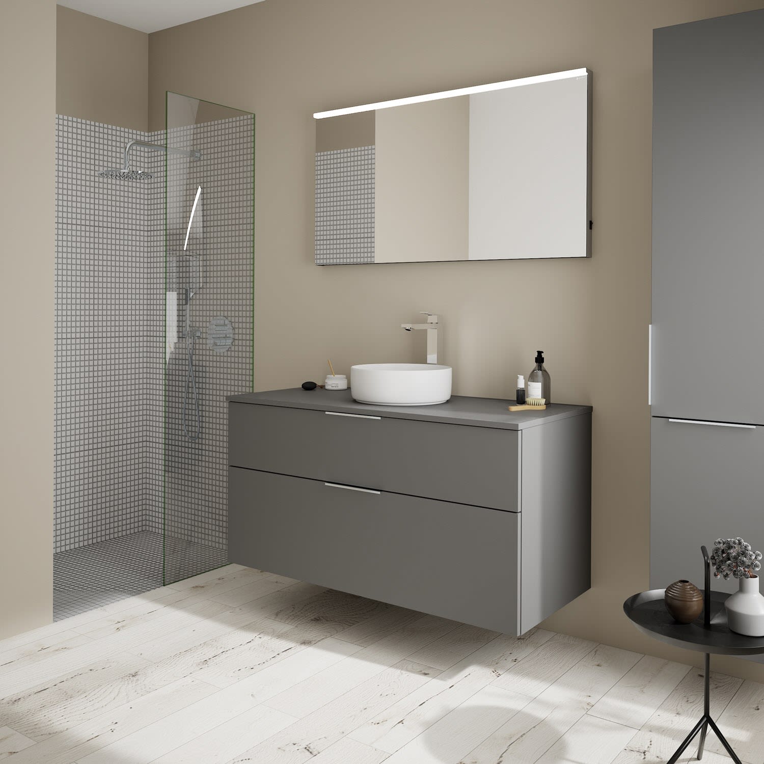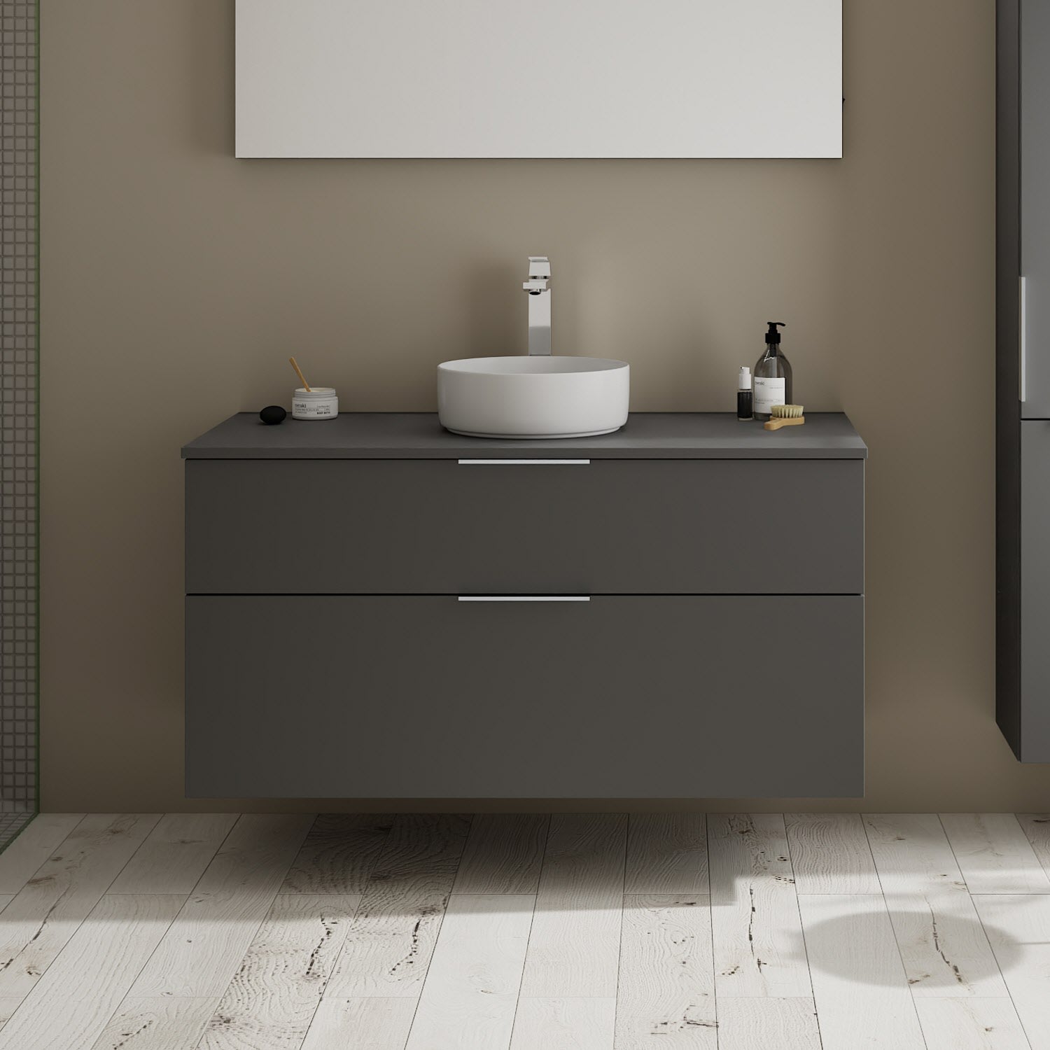 burgbad Eqio Waschtischkombination mit Keramik-Aufsatzwaschtisch 120 cm, mit Griff G0146