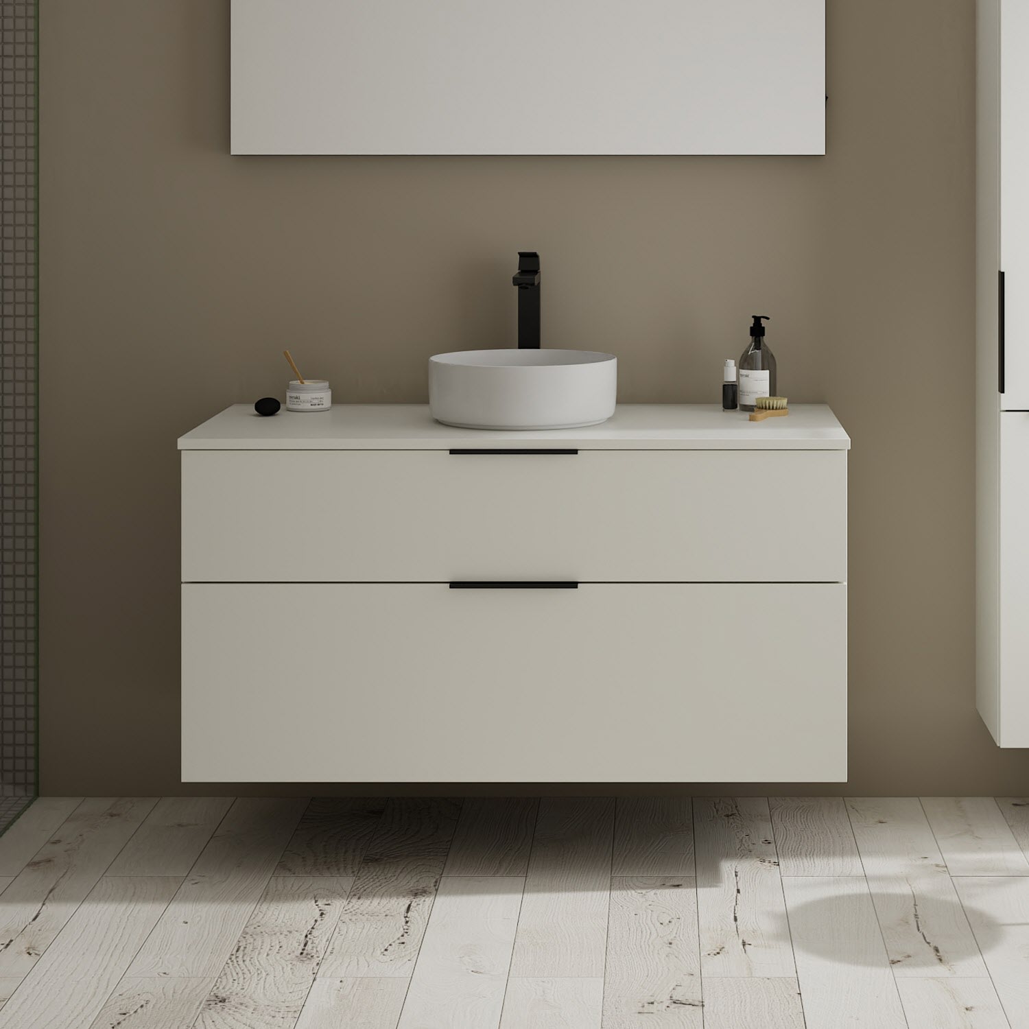 burgbad Eqio Waschtischkombination mit Keramik-Aufsatzwaschtisch 120 cm, mit Griff G0200