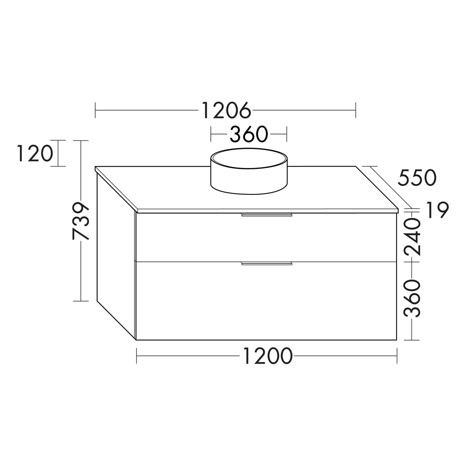 burgbad Eqio Waschtischkombination mit Keramik-Aufsatzwaschtisch 120 cm, mit Griffleiste G0251