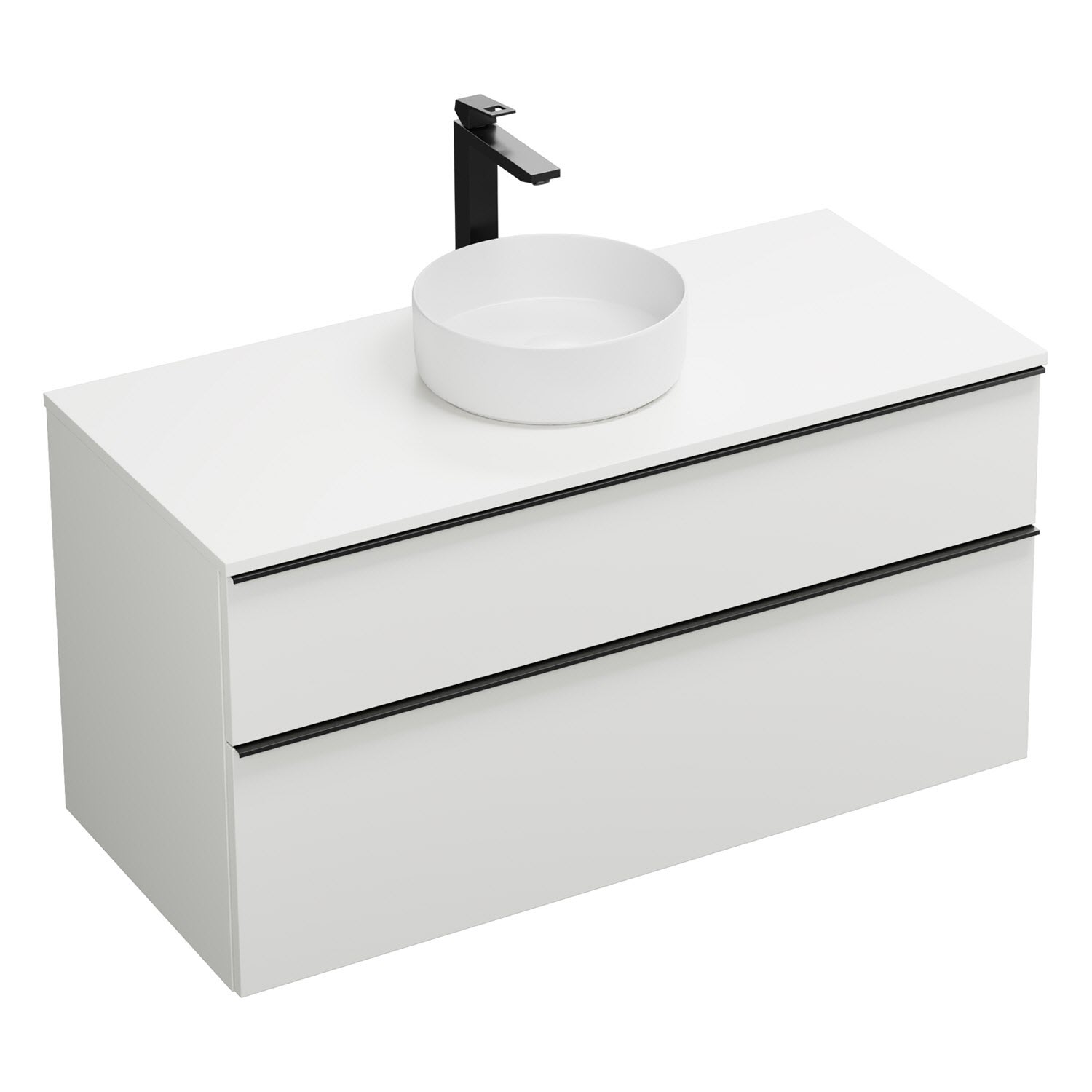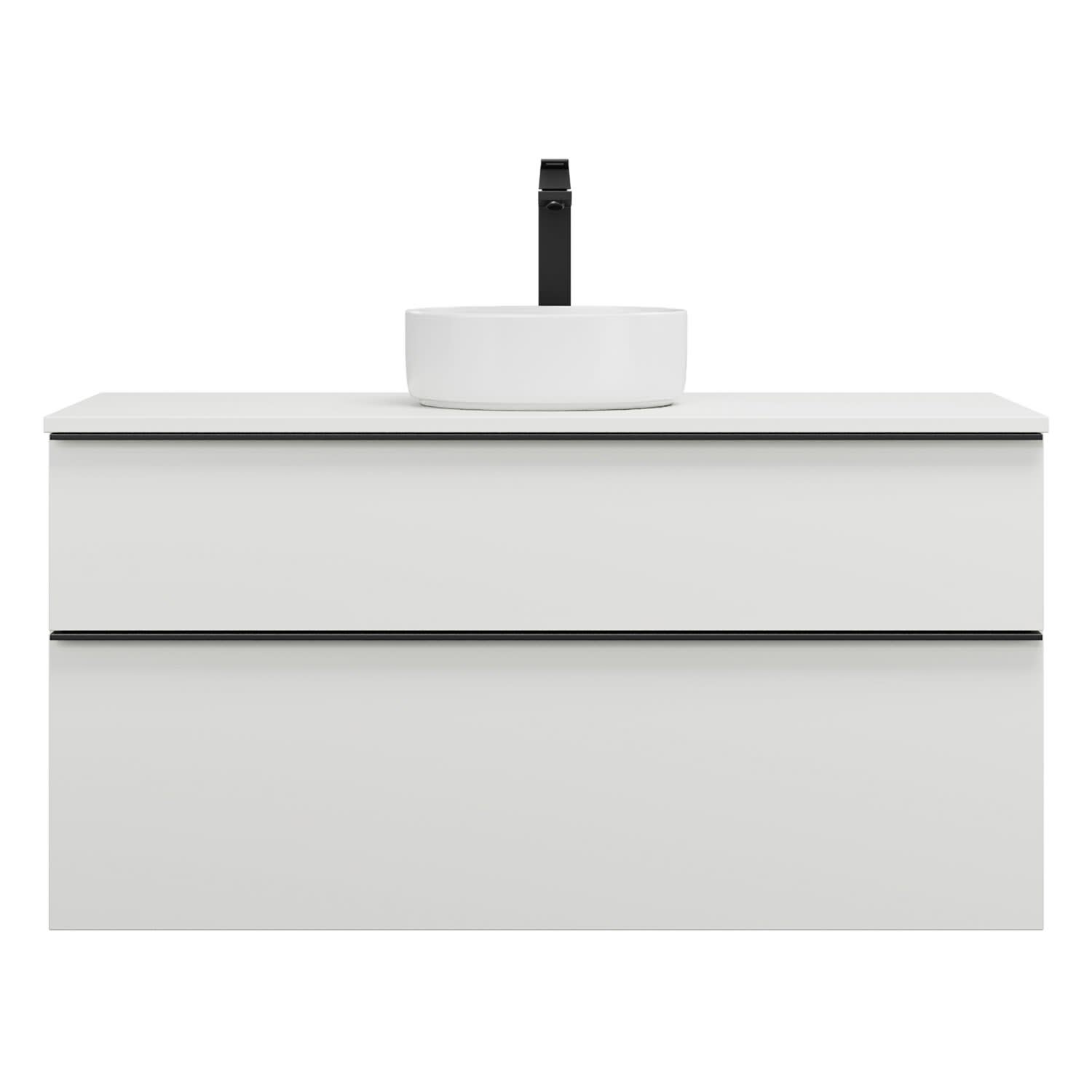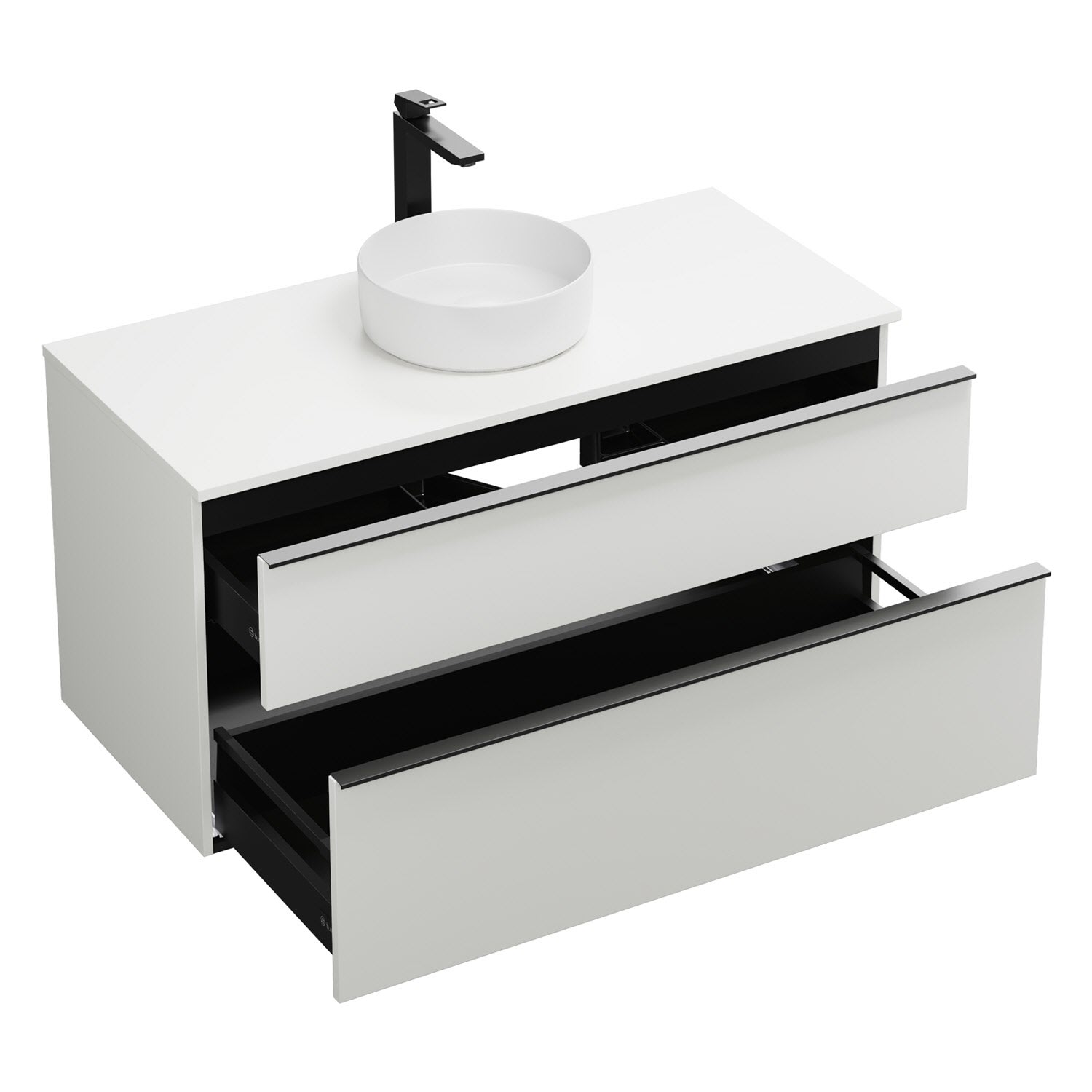 - 1 Schublade oben, 35 cm tief, mit Siphonausschnitt und Inneneinteilung