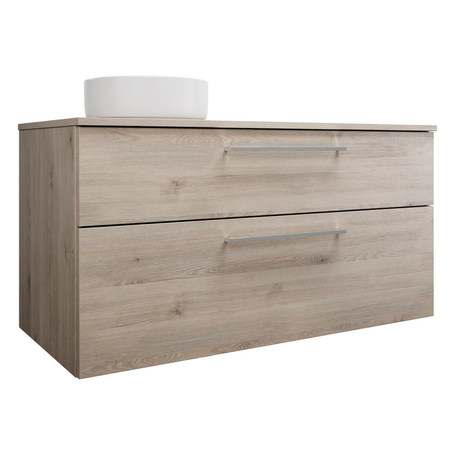 burgbad Eqio Waschtischkombination mit Keramik-Aufsatzwaschtisch 120 cm, links, mit Stangengriff P95