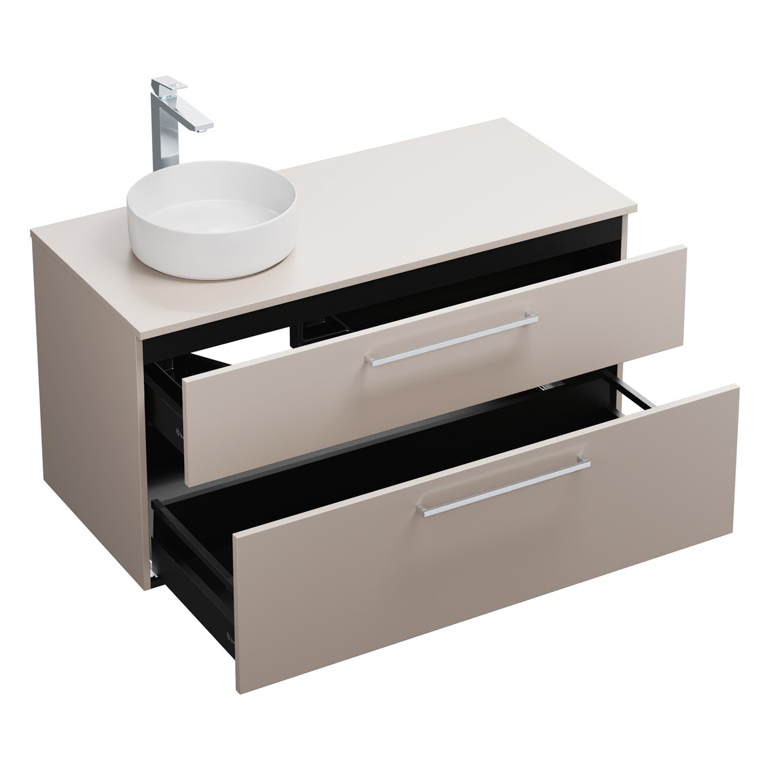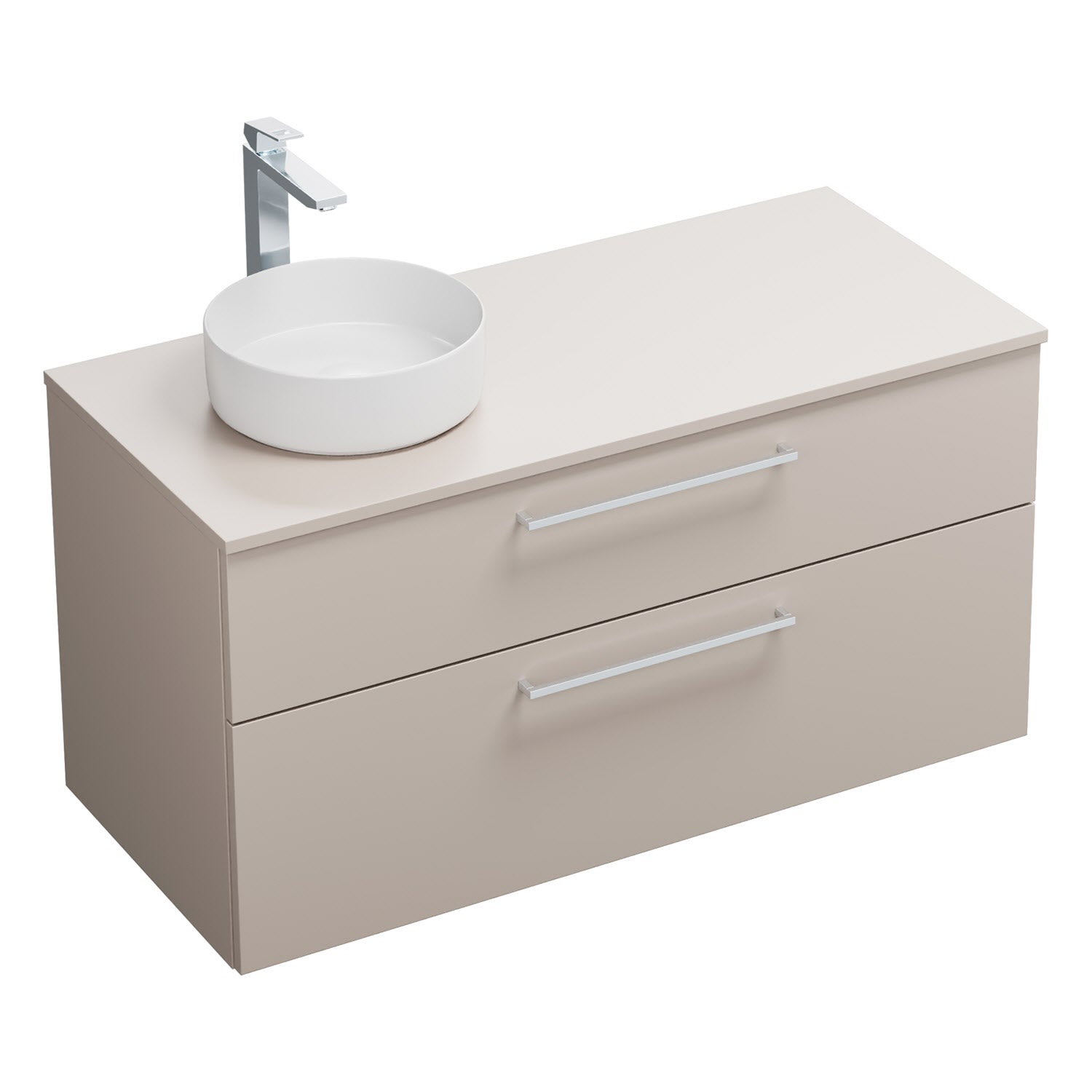 burgbad Eqio Waschtischkombination mit Keramik-Aufsatzwaschtisch 120 cm, links, mit Stangengriff P95