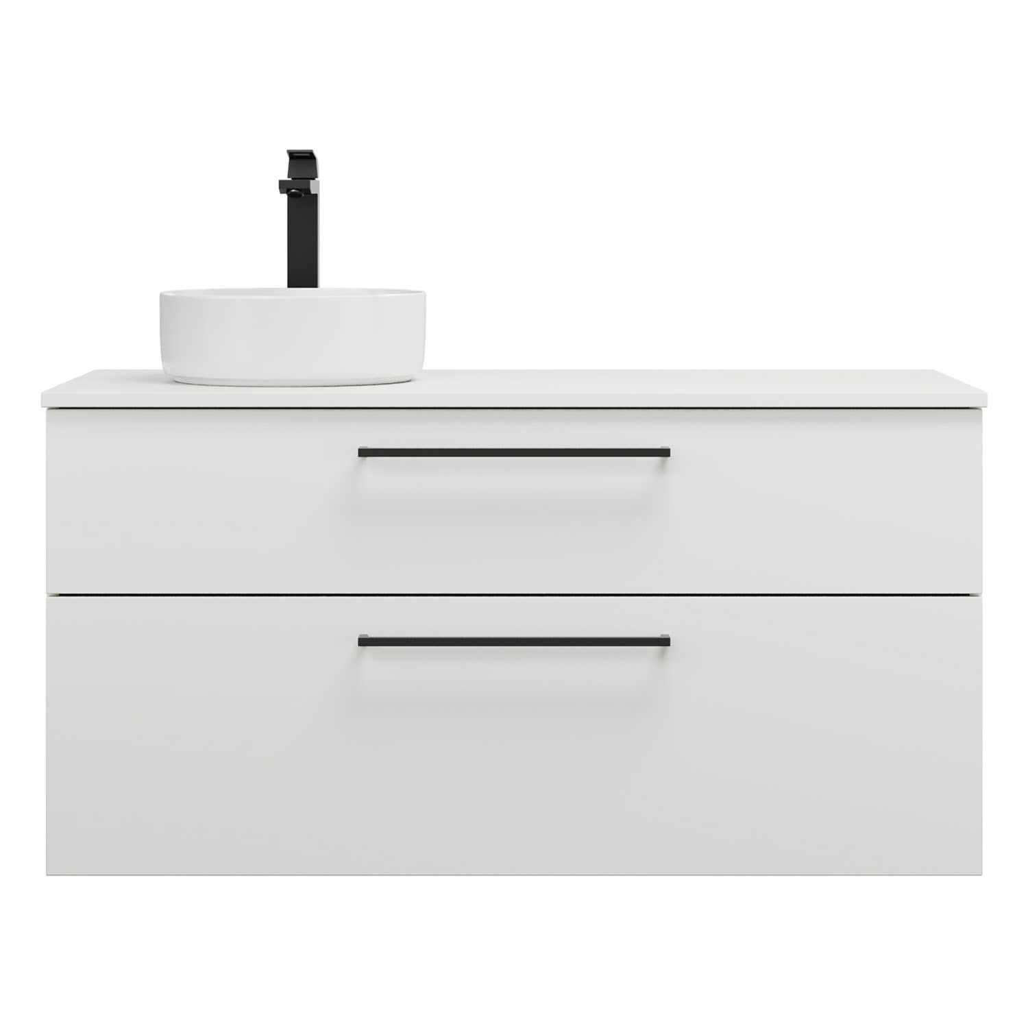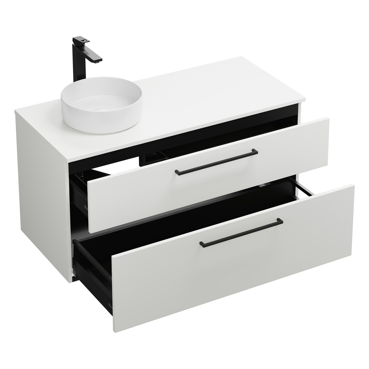 - 1 Schublade oben, 35 cm tief, mit Siphonausschnitt und Inneneinteilung