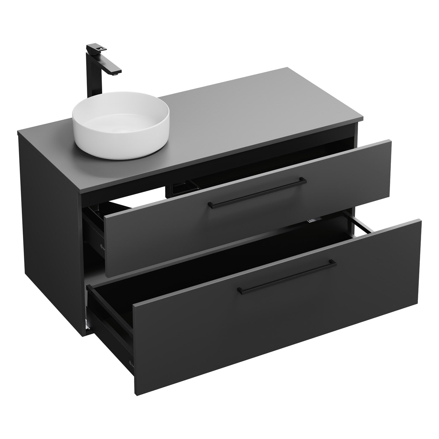 burgbad Eqio Waschtischkombination mit Keramik-Aufsatzwaschtisch 120 cm, links, mit Stangengriff G0234