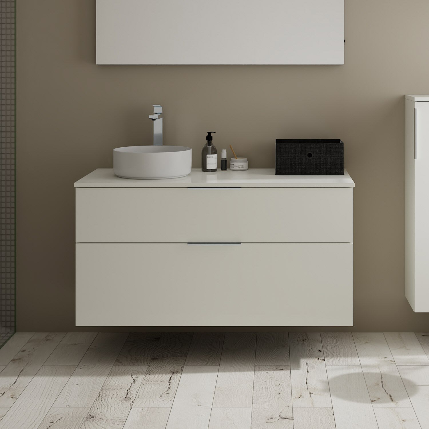 burgbad Eqio Waschtischkombination mit Keramik-Aufsatzwaschtisch 120 cm, links, mit Griff G0146