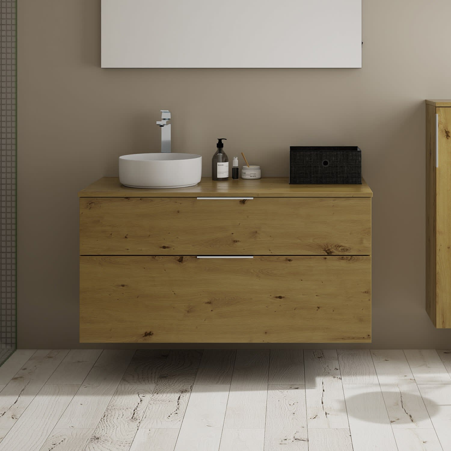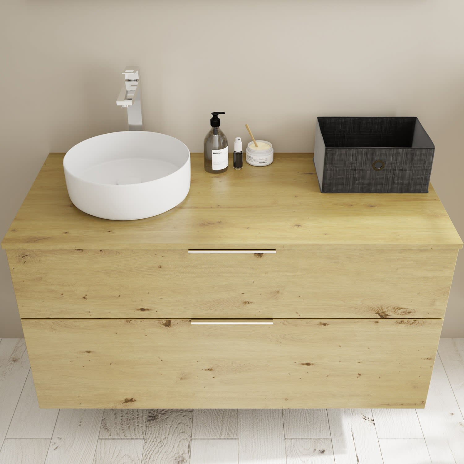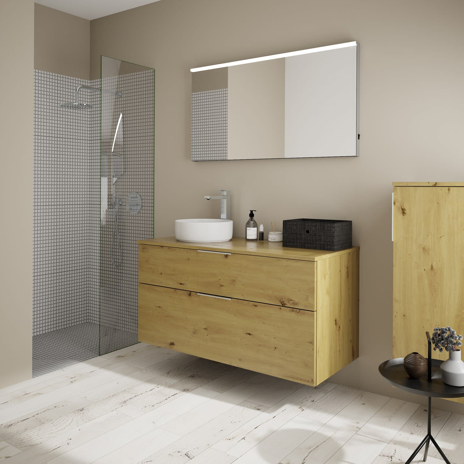 burgbad Eqio Waschtischkombination mit Keramik-Aufsatzwaschtisch 120 cm, links, mit Griff G0146