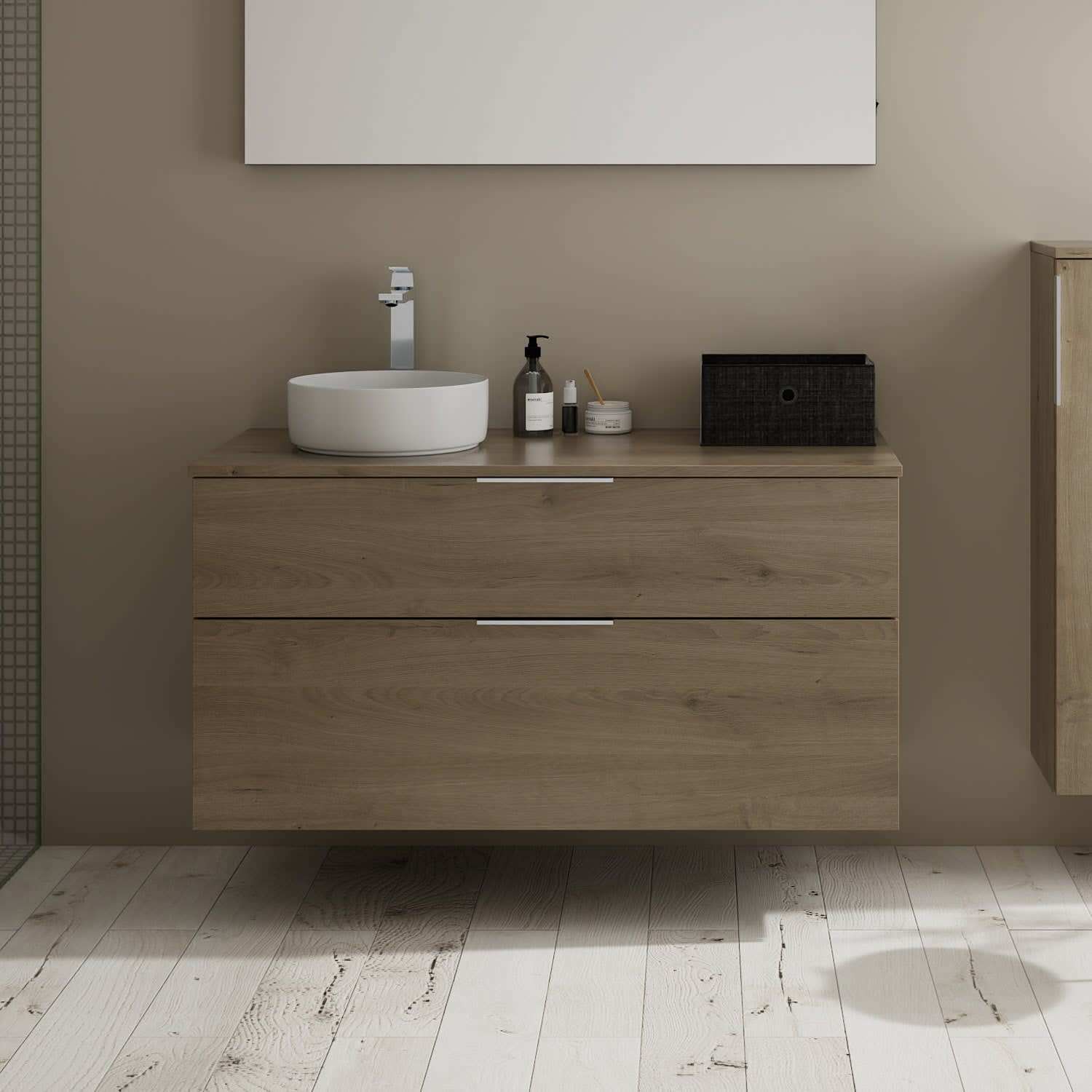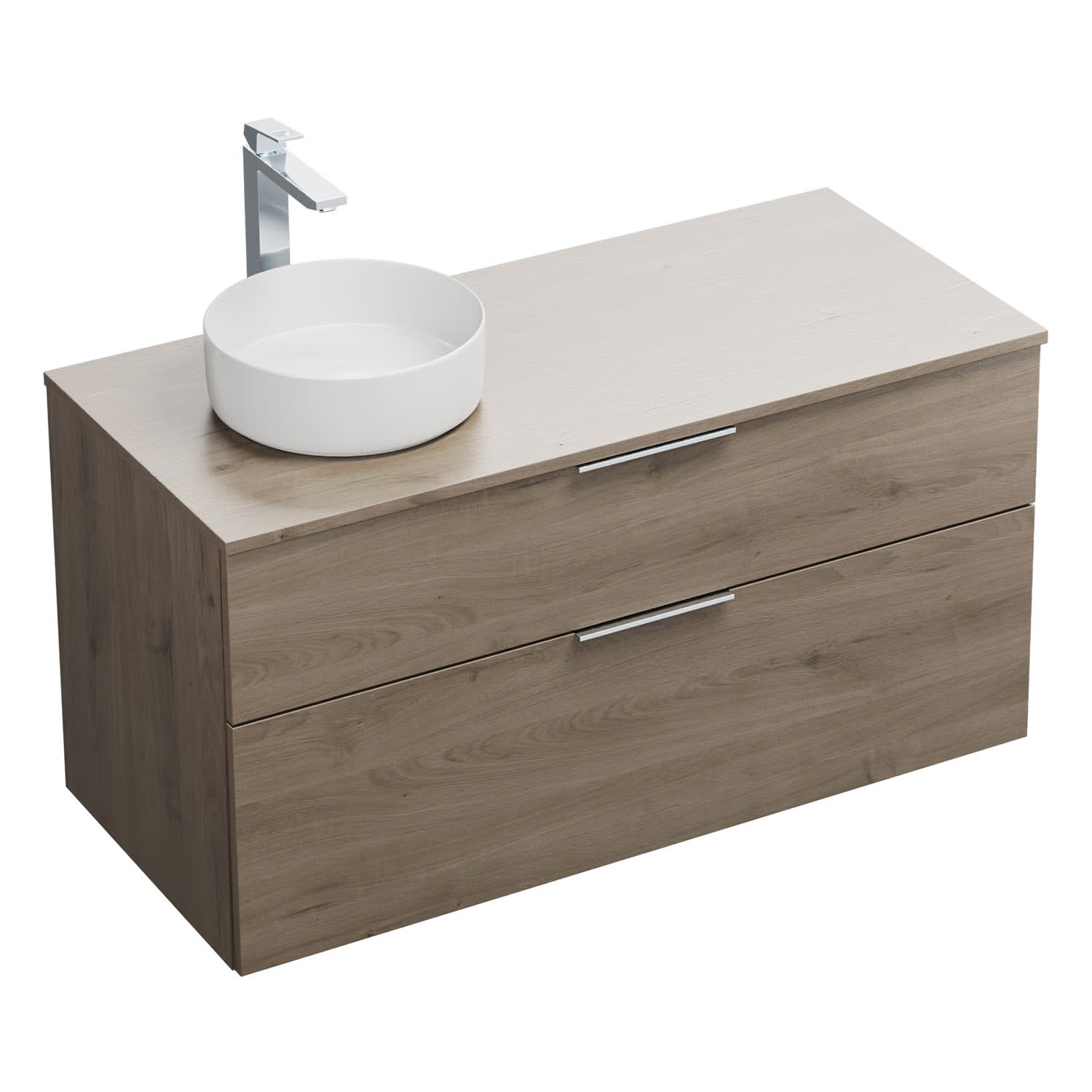 burgbad Eqio Waschtischkombination mit Keramik-Aufsatzwaschtisch 120 cm, links, mit Griff G0146