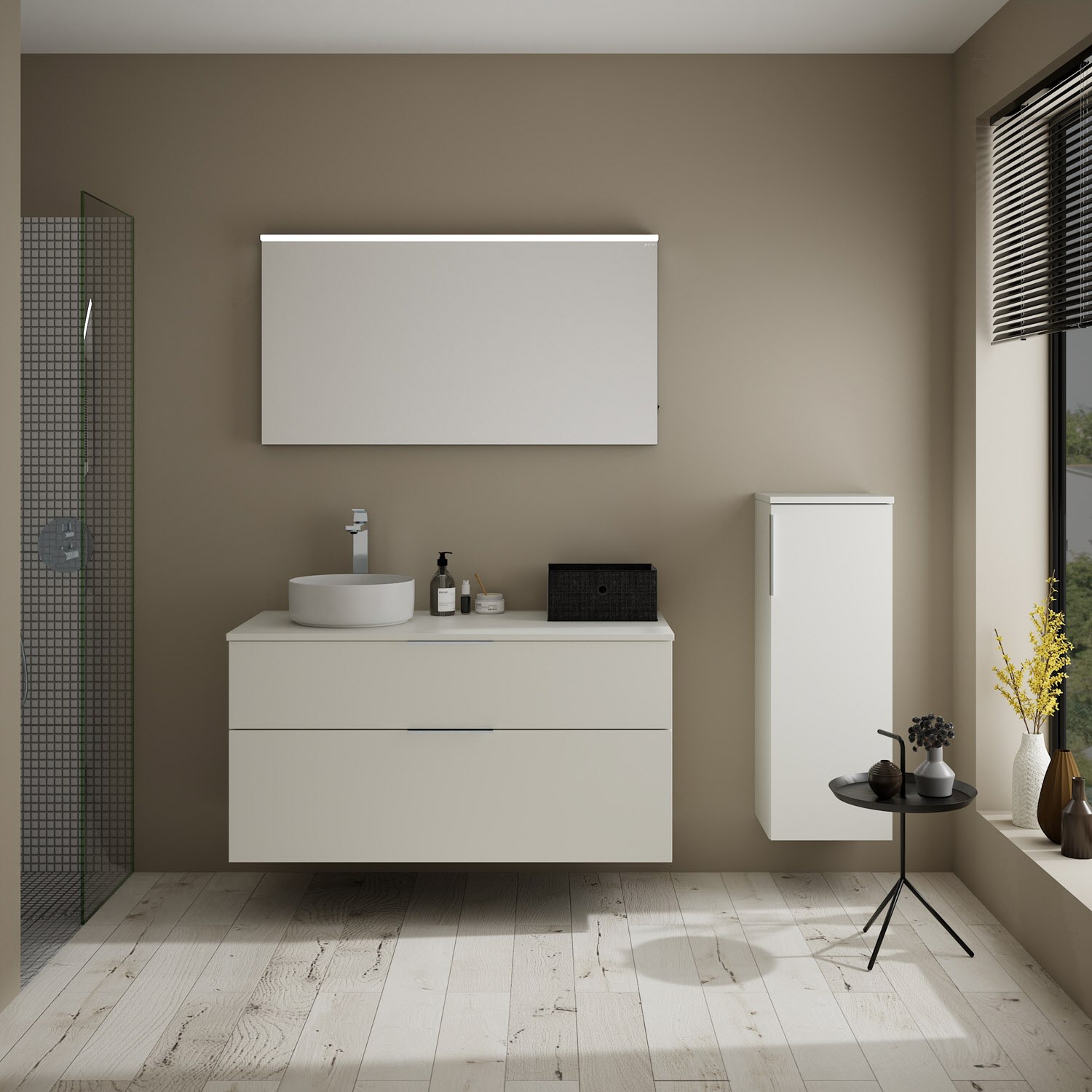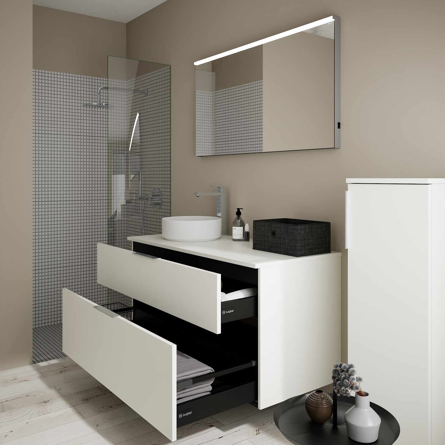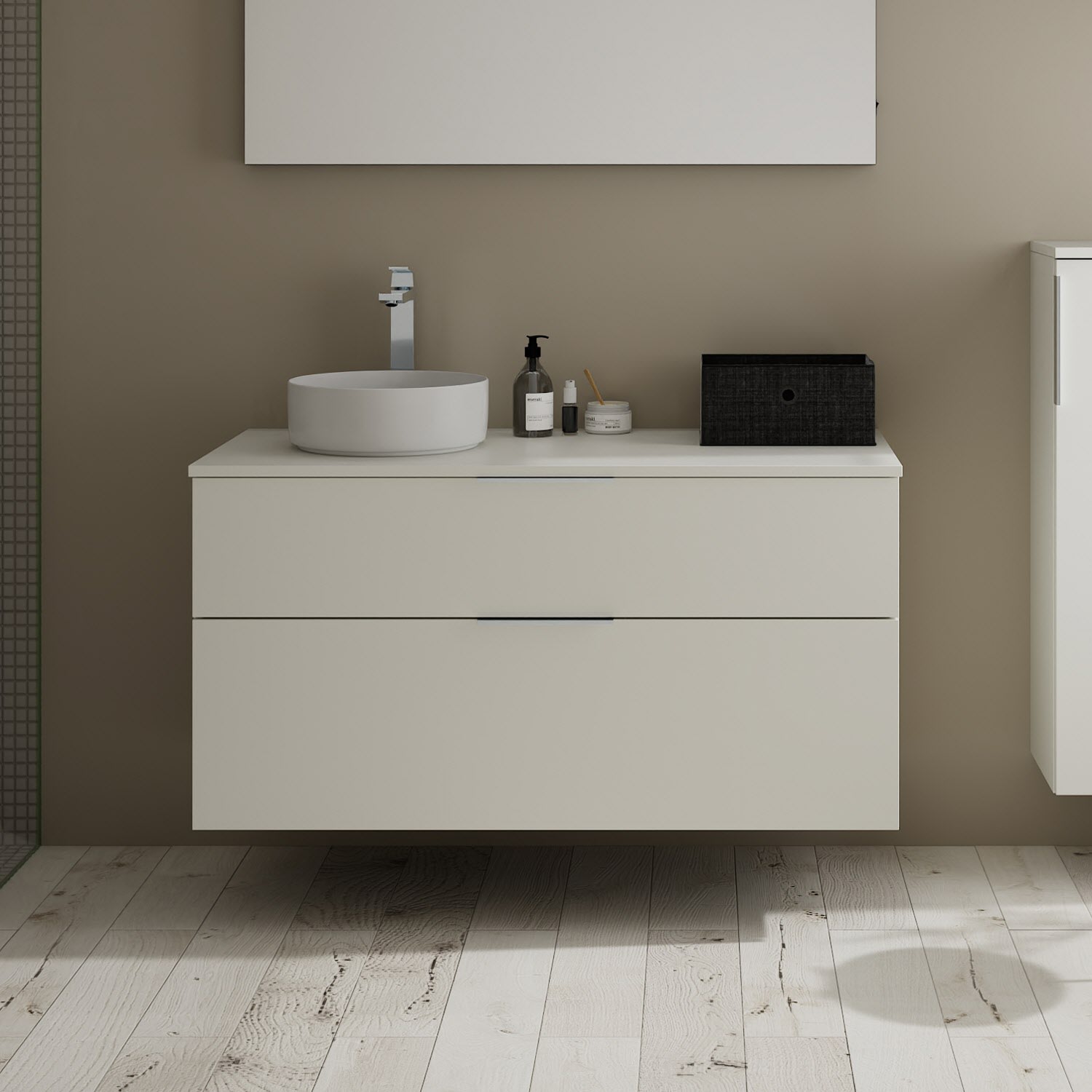 burgbad Eqio Waschtischkombination mit Keramik-Aufsatzwaschtisch 120 cm, links, mit Griff G0146
