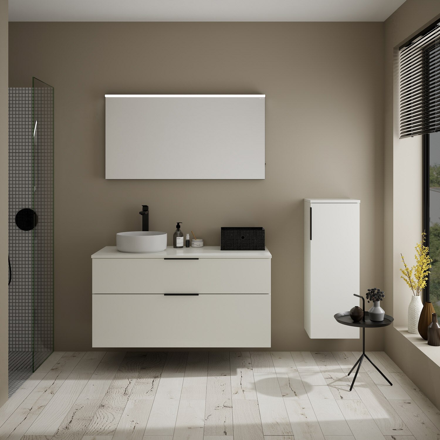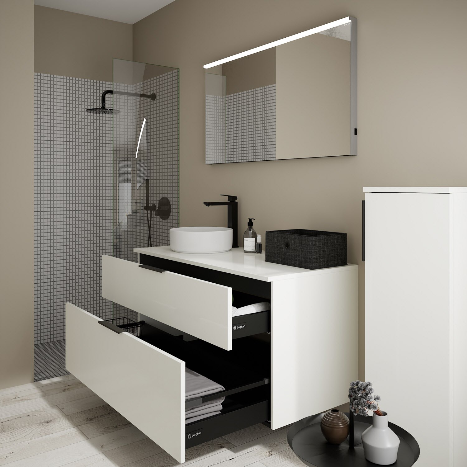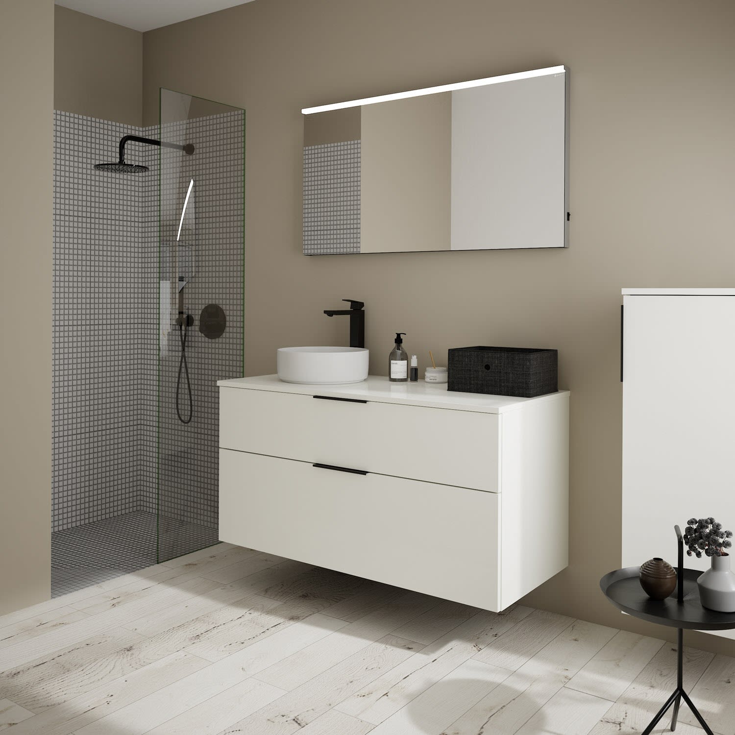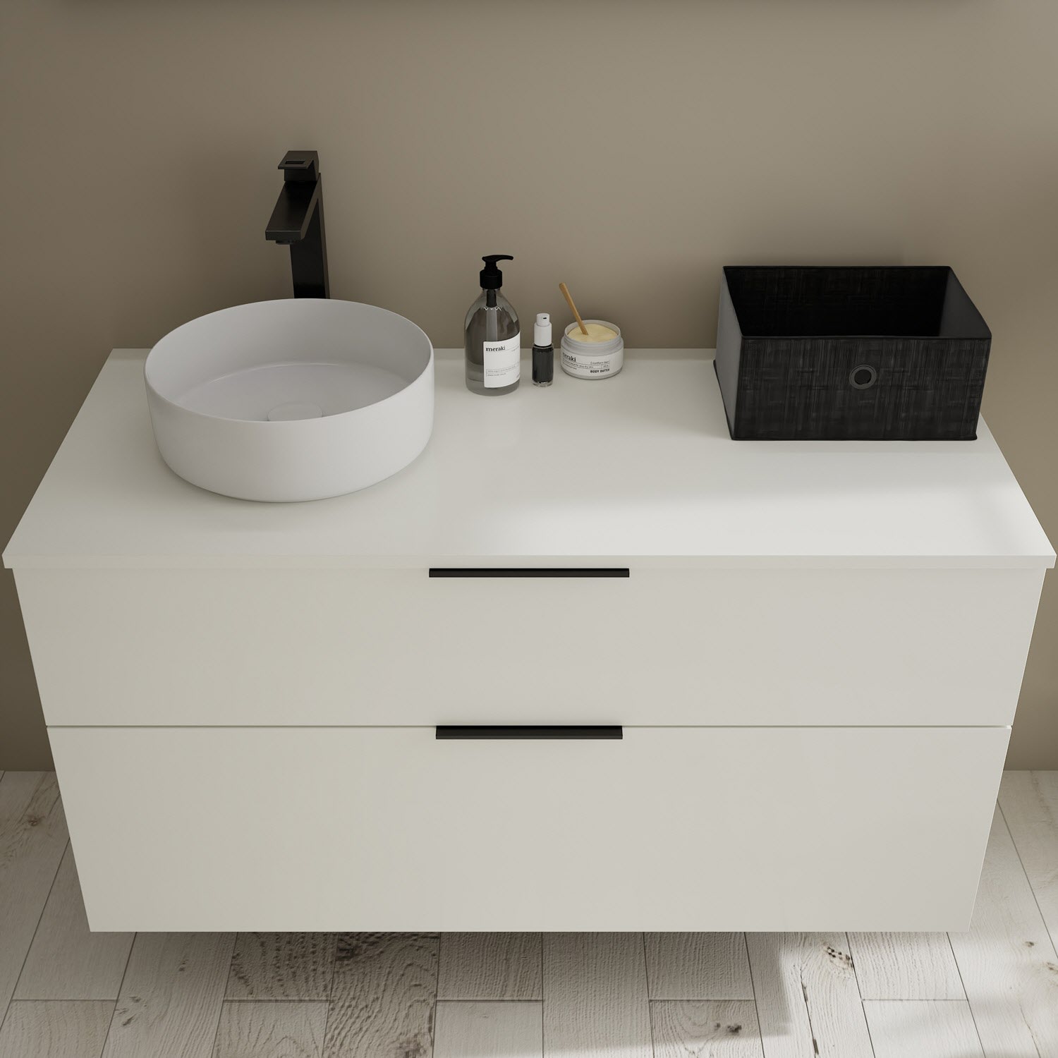 burgbad Eqio Waschtischkombination mit Keramik-Aufsatzwaschtisch 120 cm, links, mit Griff G0200